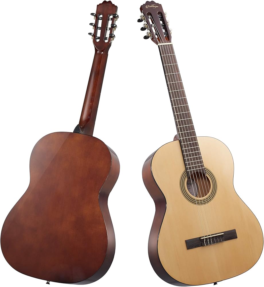الهيكل الكلاسيكي لهذا الجيتار الكلاسيكي مصنوع من الخشب الفاخر الذي يوفر نغمات واضحة ونقية ومخملية. تم تصميم هذا الجيتار بخبرة بنمط دعامة مروحة توريس للحصول على صوت مثالي. الجزء العلوي مصنوع من خشب التنوب من الدرجة A لخصائصه الموسيقية والمرنة، بينما الجزء الخلفي والجوانب مصنوعان من خشب الزيزفون للحصول على استجابة تناغمية مثالية ودفء. ثم يتم الانتهاء من الجيتار بأوتار نايلون عالية الجودة مثبتة مسبقًا من أجل لعب أكثر راحة.