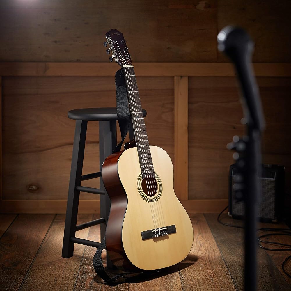 صوت مذهل: موسيقى مشرقة وجميلة تنتظر أن يتم تشغيلها بأوتار نايلون ناعمة. لا تدع الحجم الكلاسيكي والشعور خفيف الوزن لهذا الجيتار يخدعك؛ يتميز هذا الجيتار بأصوات جميلة عند العزف على الألحان الكلاسيكية والفلامنكو والشعبية التقليدية وحتى موسيقى الجاز.