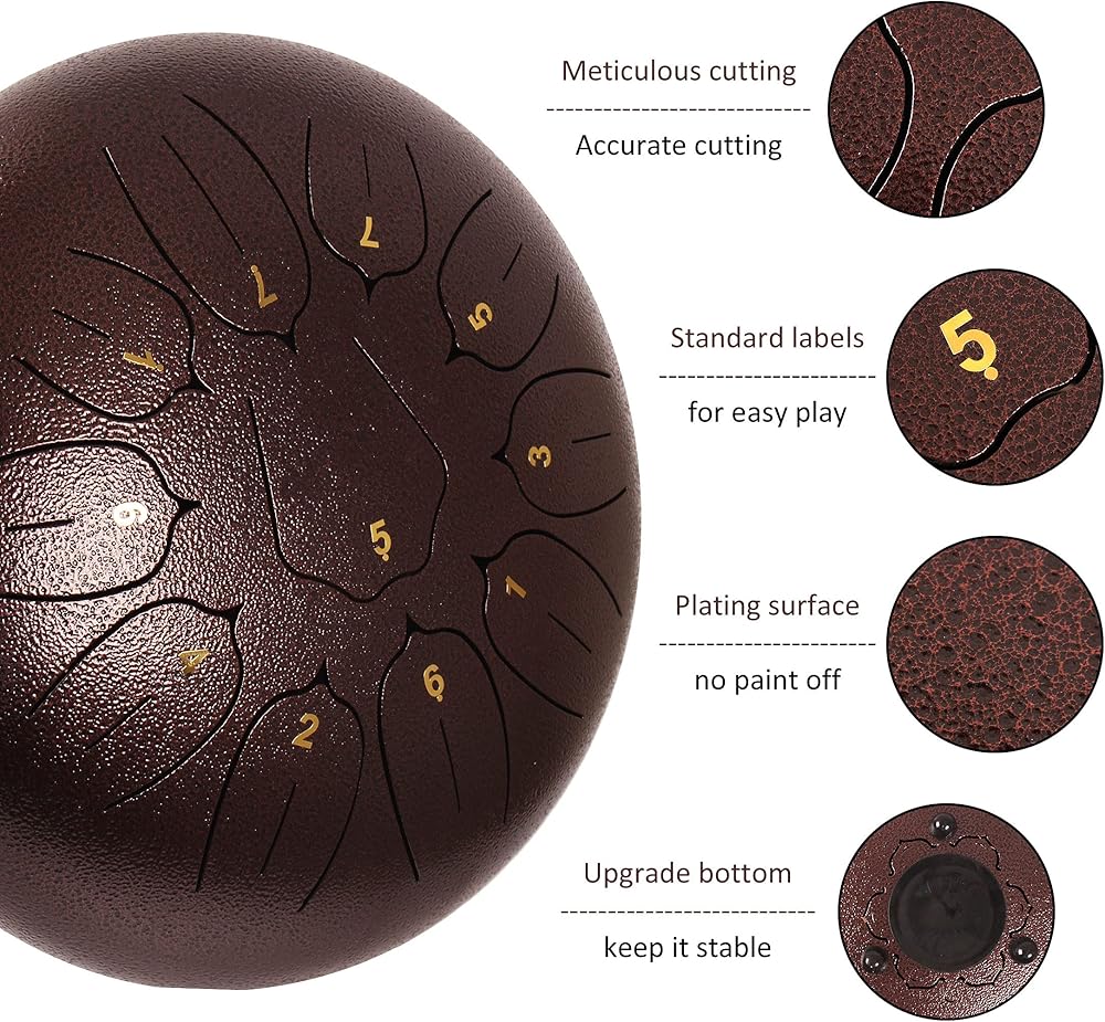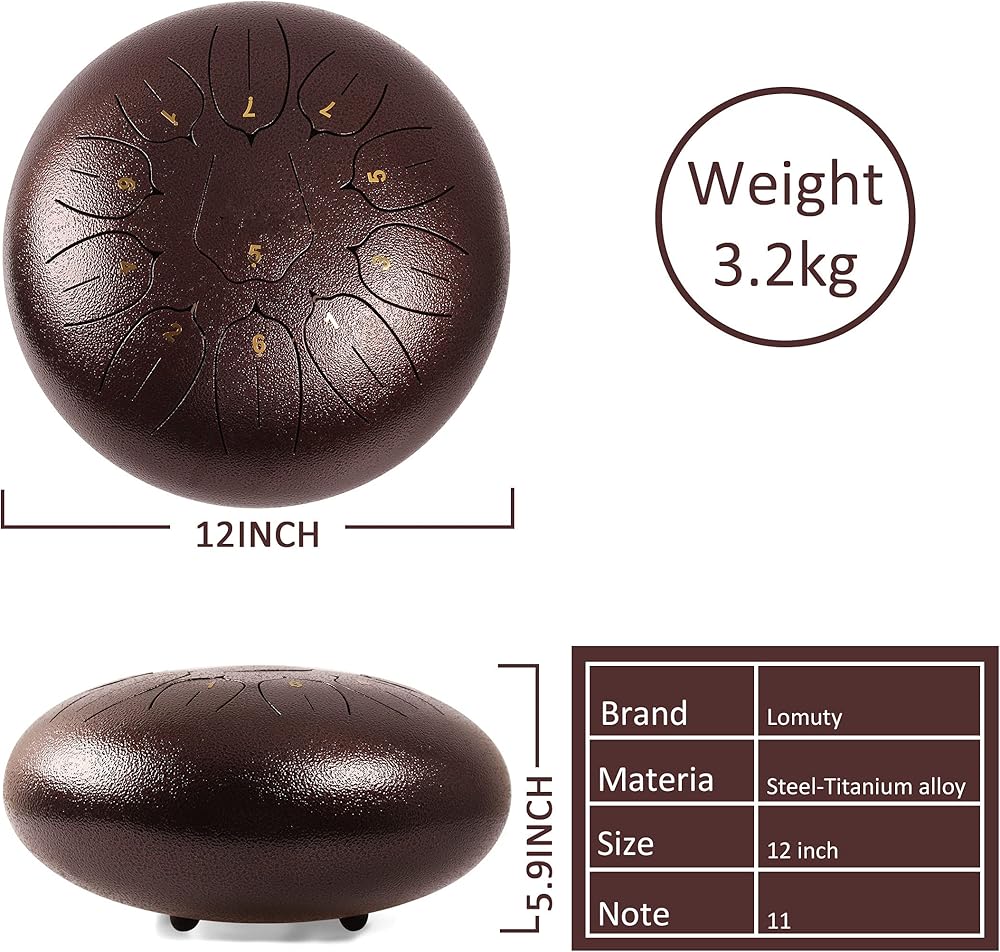 【أسطوانة لسان ذات 11 لونًا】تأتي أسطوانة اللسان الفولاذية مقاس 12 بوصة و11 نغمة تم ضبطها مسبقًا على Mxied C Major. نغمة طبلة اللسان الفولاذية ناعمة ورخيم، يمكنك أن تشعر بالاسترخاء والسعادة من القلب. "LOMUTY" هي علامتنا التجارية المسجلة، سوف تحصل عليها بشعار مطلي بشكل عشوائي بسبب دفعة الإنتاج المختلفة.