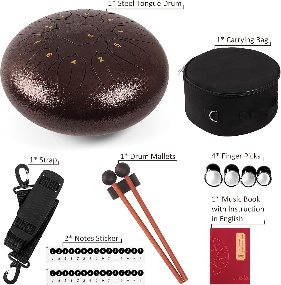 【العبوة متضمنة】طبل فولاذي، مطارق، كتاب موسيقى باللغة الإنجليزية، حقيبة، ملصق ملاحظات، أعواد