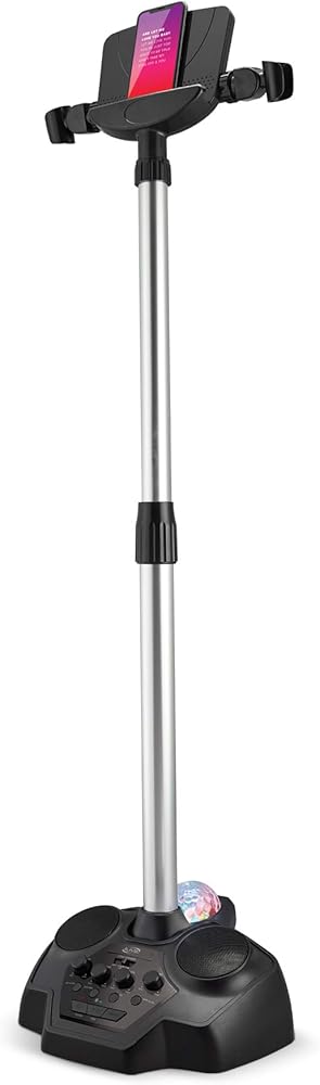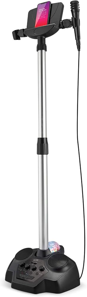 لن تقف حفلة الكاريوكي لديك فرصة دون مسند مغني لكاريوكي آيلايف. اضبط الحامل إلى الارتفاع المناسب وادخل في المنطقة مع صوت (تناغم ، درجة عالية ، درجة حرارة منخفضة) والصوت (قرن الهواء ، التشجيع ، دي جي ، والتصفيق) تتميز بمدخل الجيتار وأضواء LED إيقاعية وكرة ديسكو ستظهر أفضل ما لديك أثناء موسيقى المنزل. للمزيد من المرح، أضف ميكروفون ثانٍ (غير متضمن) وغناء دويتس مع صديق. انطلق واغناء!
