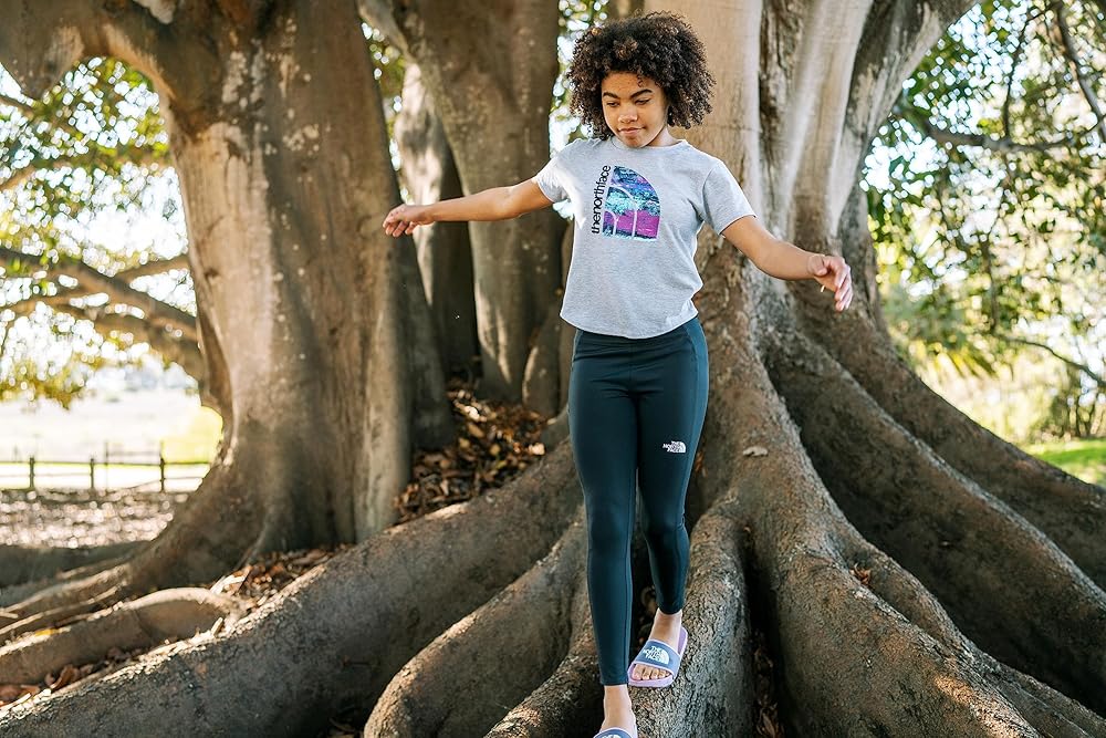 • خذ اليوم. يعتبر هذا التي شيرت قطعة أساسية في خزانة الملابس، وهو كلاسيكي للتنزه سيرًا على الأقدام أو المدرسة أو المرح في الهواء الطلق. يمكنها ارتداؤه مع بنطال الجينز أو الشورت الرياضي المفضل لديها وارتداء شارة الاستكشاف بفخر مع The North Face.