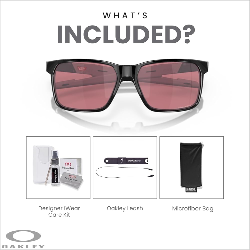 نظارة شمسية مربعة الشكل Portal X 9460 للرجال من أوكلي + سلسلة + مجموعة Designer iWear Care Kit