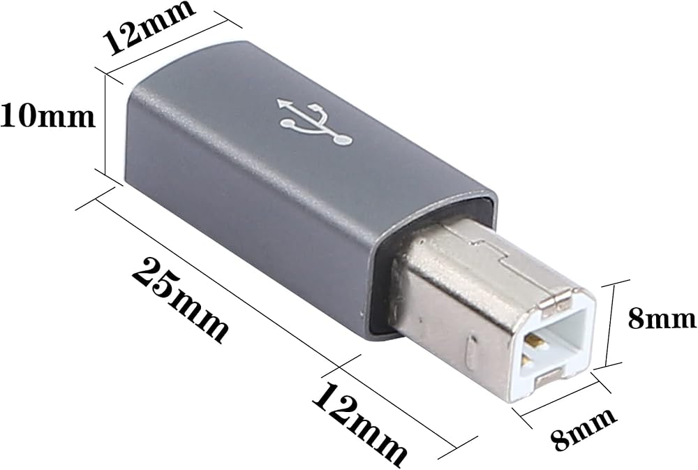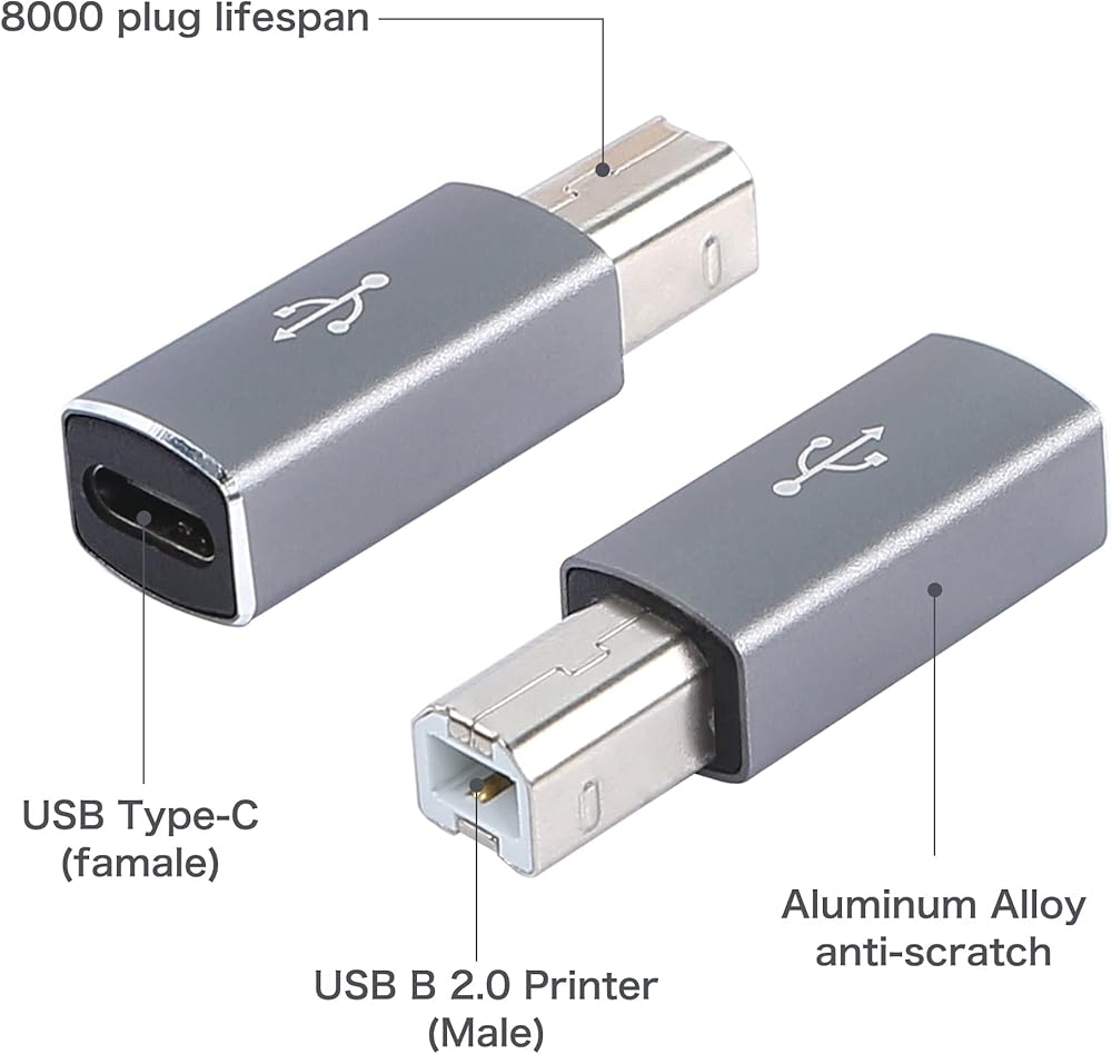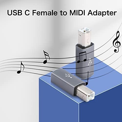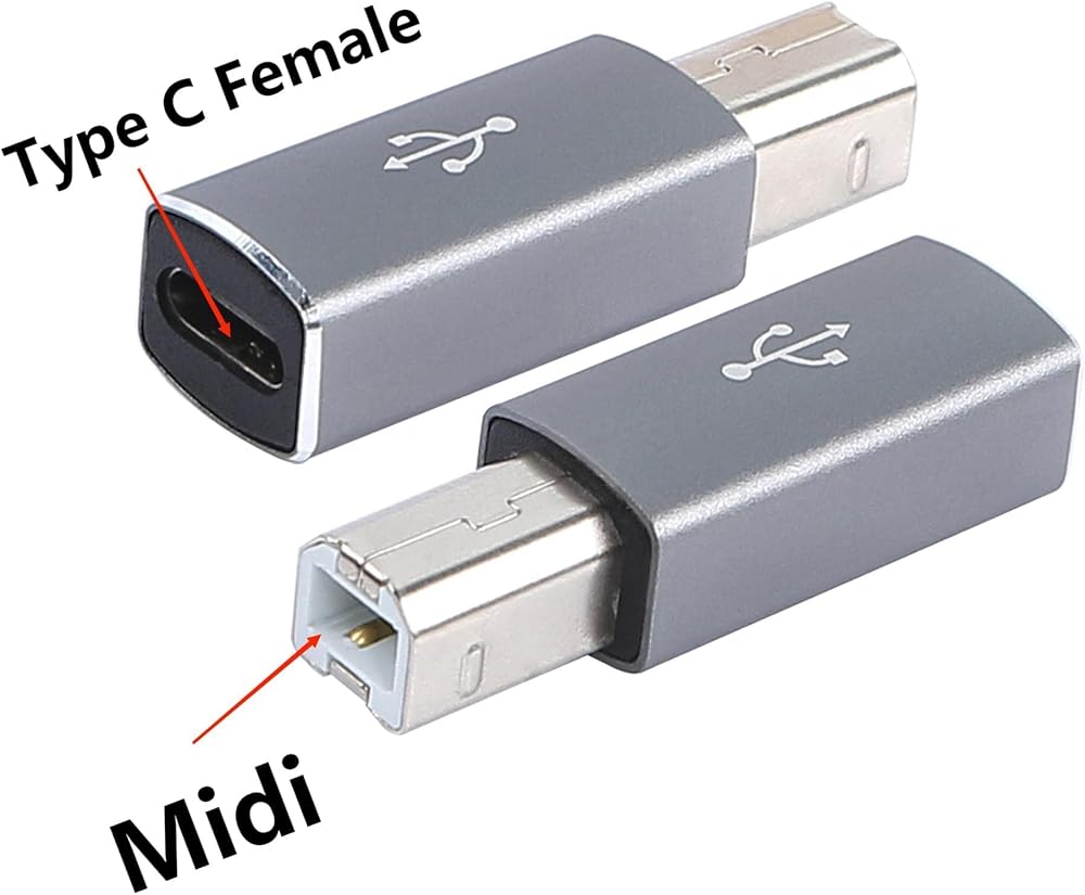 كيانرينون محول USB C انثى الى ميدي من النوع C الى ذكر USB B محول طابعة للطابعة ميدي ومزيج البيانو الكهربائي والمزيد من اجهزة النوع سي / اللاب توب، قطعتين رمادي