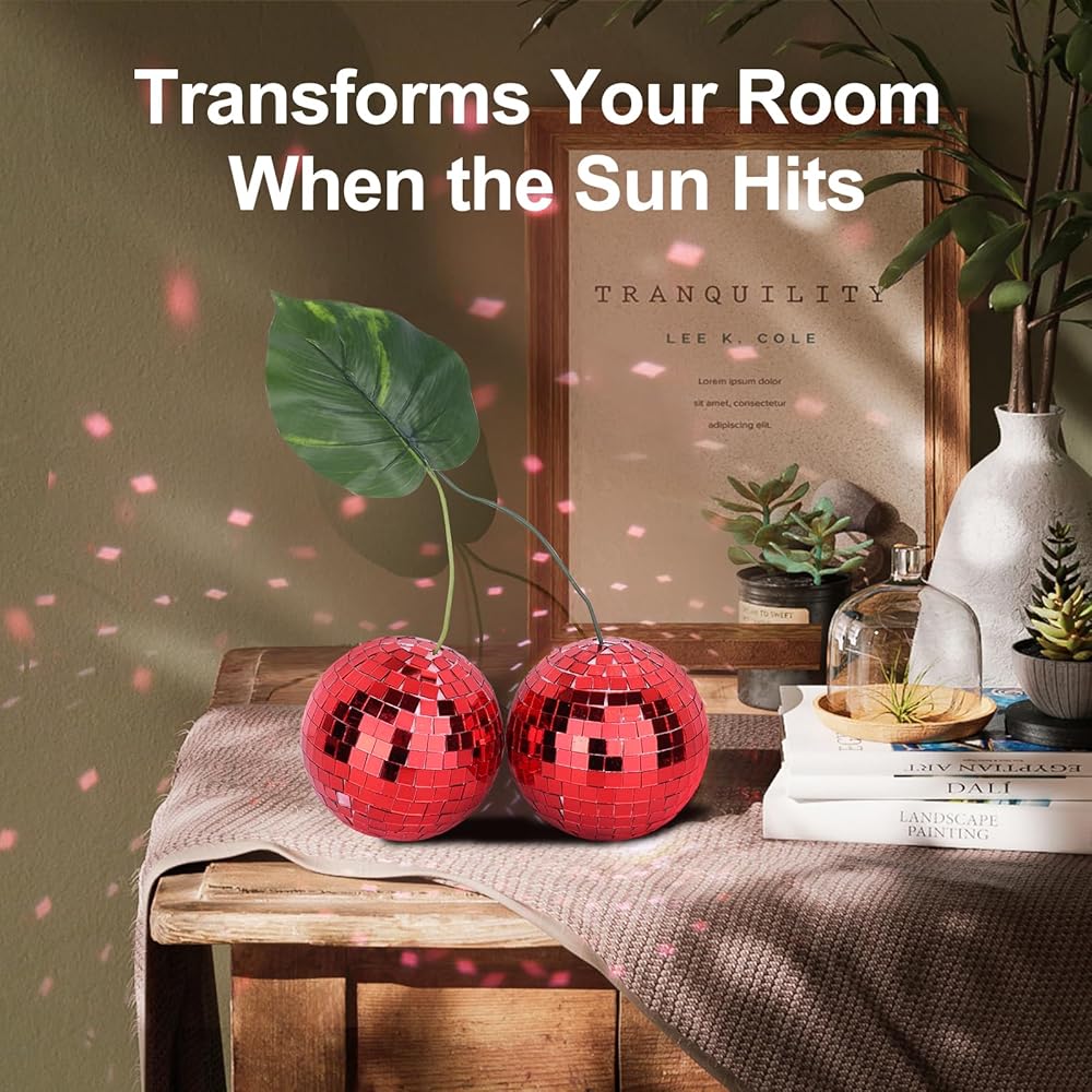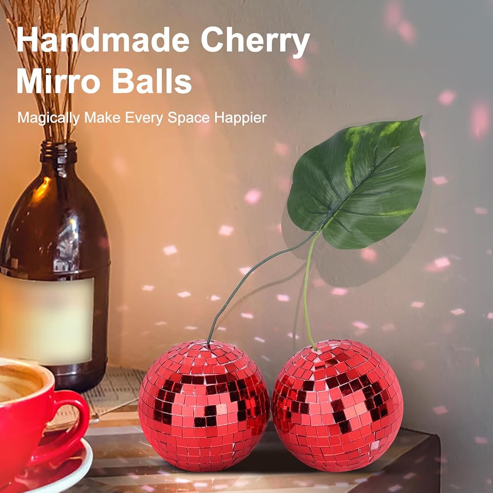 ديكور للمنزل: يمكن أن تساعد كرات المرآة في إضاءة الجو من خلال إضافة انعكاسات ضوئية إلى الحفلات، وهي إكسسوار رائع لأي غرفة. كرة الديسكو على شكل الكرز الرجعية مناسبة لأي نوع من المناسبات، سواء كانت حفلة منزلية أو حدث عمل تجاري، فهي مثالية لحفلات أعياد الميلاد وحفلات الزفاف والعطلات والنوادي الليلية وKTV.