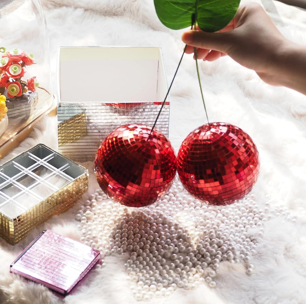 كرات ديسكو حمراء/فضية/وردية: كرة مرآة ديسكو مع لمعان من البلاط الزجاجي الحقيقي، يمكن استخدامها على نطاق واسع لتزيين المنزل أو تزيين المسرح، كما أنها مثالية للهالوين، والكريسماس، والزفاف، والحفلات، والأعمال التجارية والنوافذ، وتضيف لمسة براقة. ينظر إلى المكان.