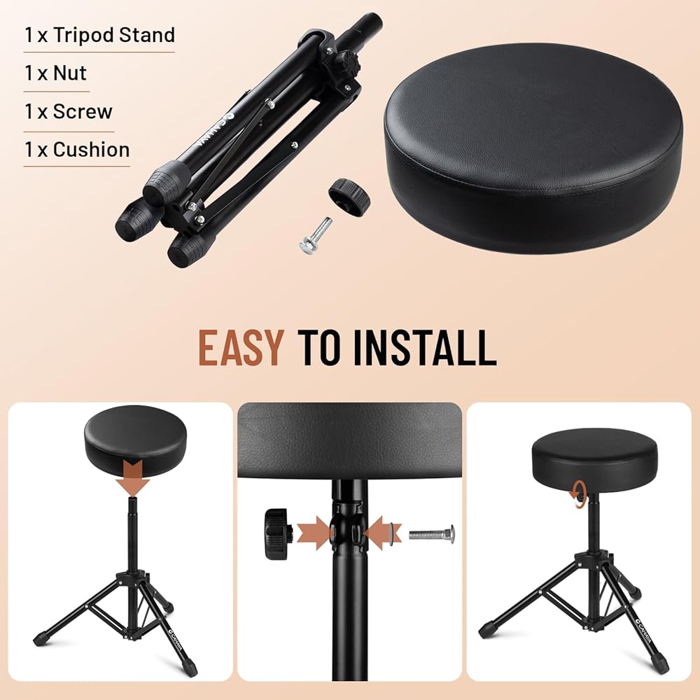 كاهايا كرسي طبل: يتميز مقعد الطبل الخاص بنا بوسادة ناعمة من البولي يوريثان، محشوة بإسفنج بسمك 2.6 انش، مما يضمن أن الطبول يمكنه الحفاظ على وضع مريح أثناء اللعب أو التمرين الطويل.