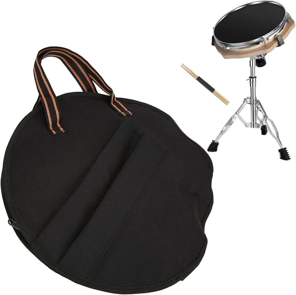حقيبة طبلة البكم 10 بوصة مقاومة للصدأ من قماش أكسفورد حقيبة ممارسة الطبل البكم مع شريط أسود أصفر لتخزين الطبل البكم