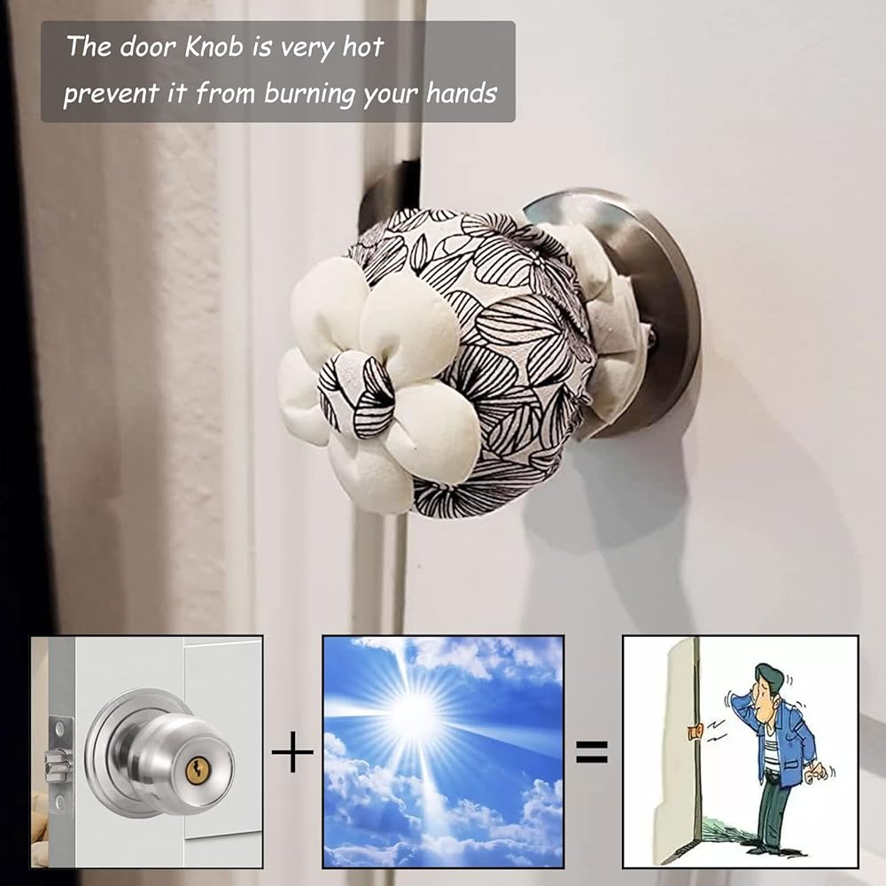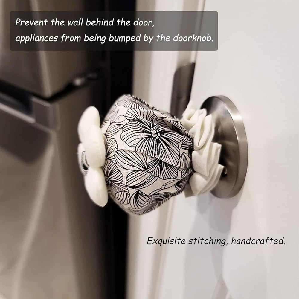 【مصنوع يدويًا】واقي مقبض الباب من القماش محشو بحشوة من الألياف فائقة النعومة. خياطة رائعة، يتم عمل التطريز بواسطة آلات الخياطة التي تعمل يدويًا. القماش ناعم الملمس، ولا يتحبب وهو أنيق للديكور.