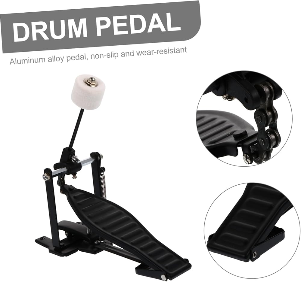 مجموعة طبلة دواسة القدم - المادة: دواسة الطبل هذه مصنوعة من سبائك الألومنيوم عالية الجودة مع جهاز تعديل زنبركي واحد. ودائم وليس من السهل. مطرقة اللباد مصنوعة من اللباد وقضبان معدنية لن تلحق الضرر برؤوس الطبول، مما يمنحك صوتًا إيقاعيًا كاملاً بسهولة.