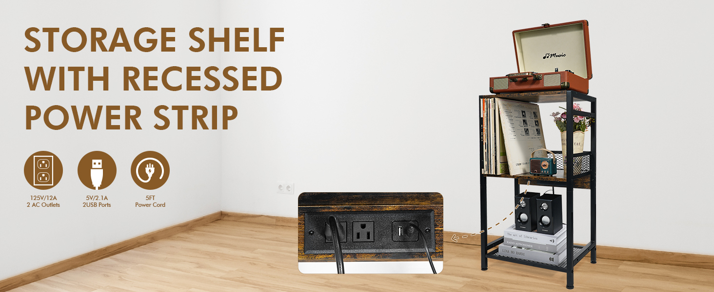 • 【شريط طاقة مجوف】يوجد شريط طاقة مجوف في منتصف رف التخزين ثلاثي الطبقات، مع منفذين، ومنفذي USB متصلين بسلك طاقة بطول 5 أقدام، مما يوفر وصولاً مريحًا لشحن ملحقات/أجهزتك الجيتار، مما يتيح لك قول وداعًا. للبحث عن منافذ المتاعب في كل مكان.