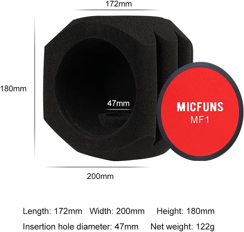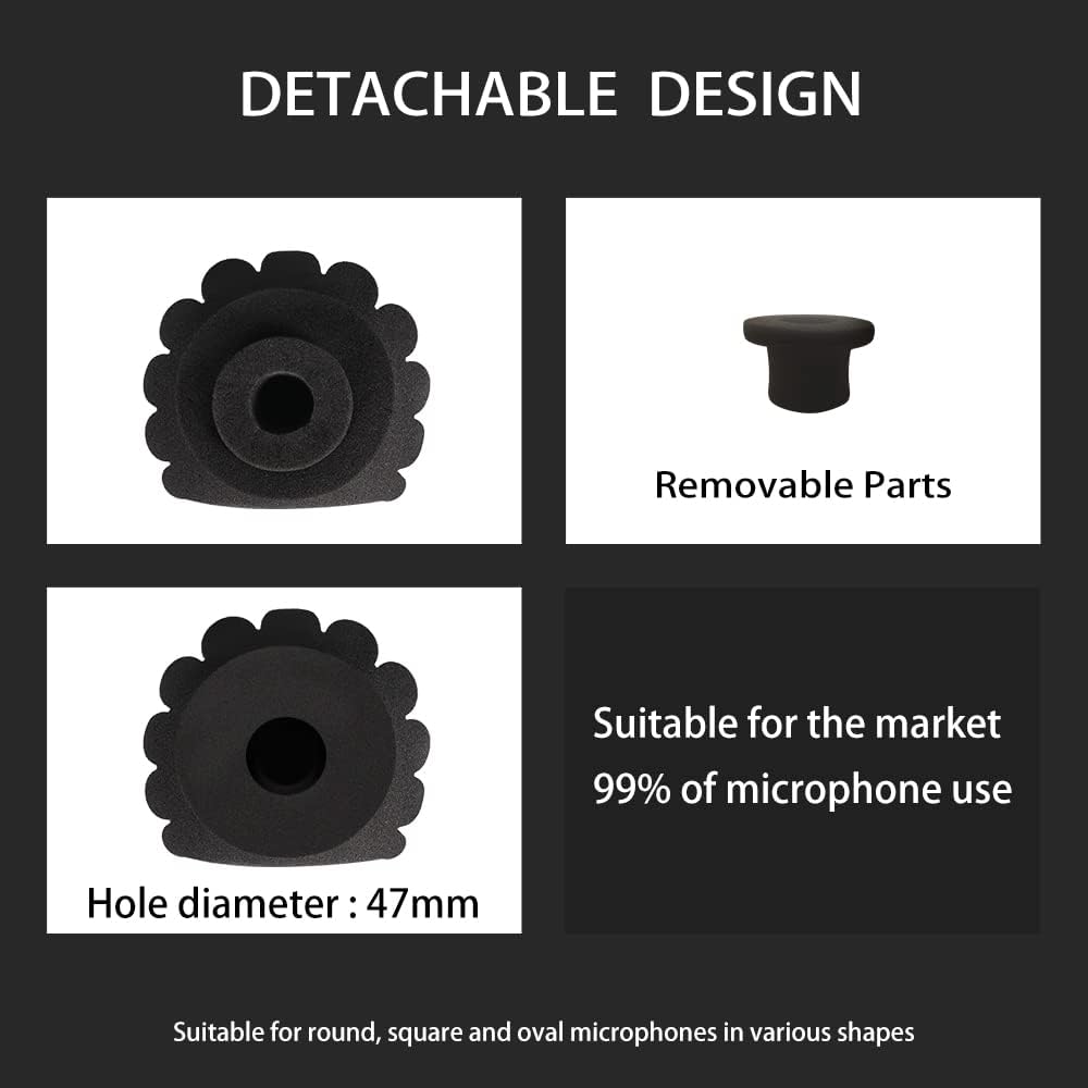 مناسب لمعظم الميكروفونات: الزجاج الأمامي مناسب لمعظم ميكروفونات USB والميكروفونات المكثفة وميكروفونات شريط الرصاص بقطر سترة يتراوح بين 45-60 مم.