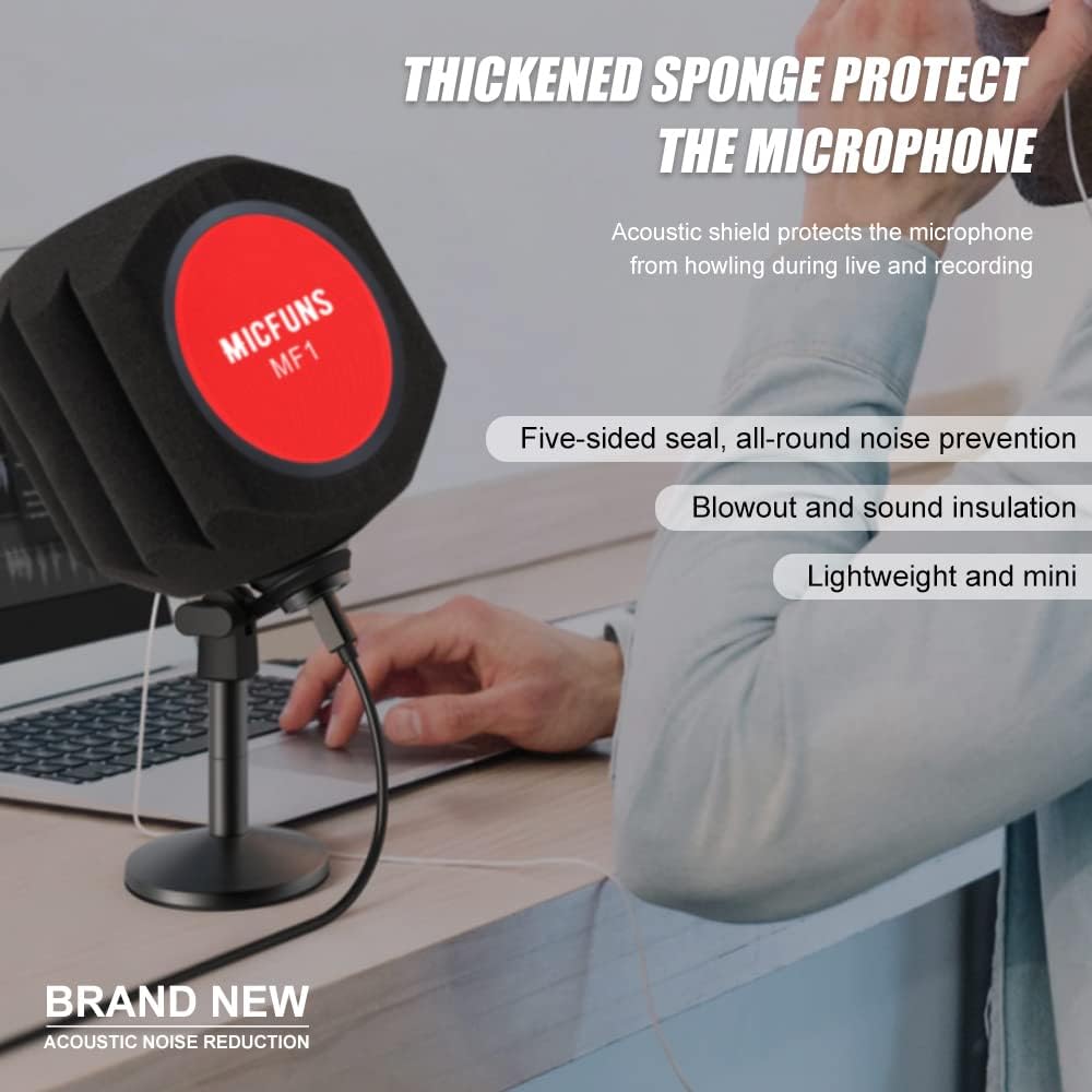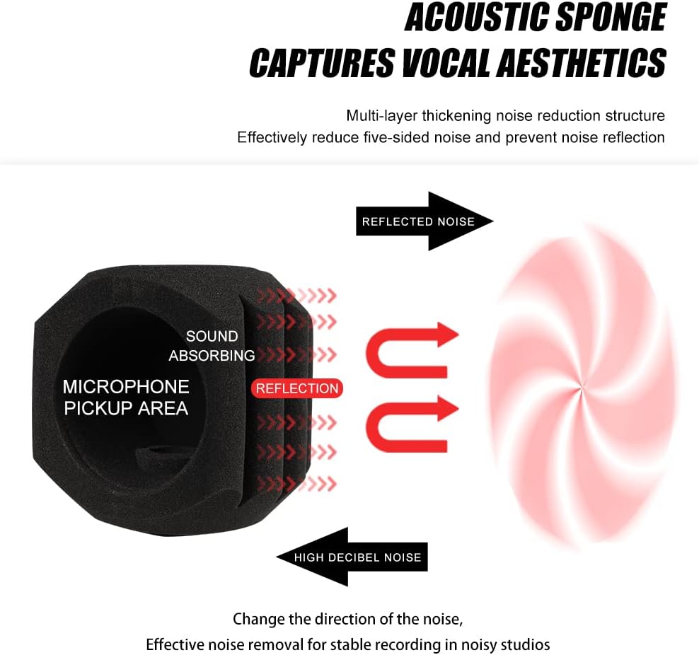 إسفنجة عالية الكثافة لإلغاء الضوضاء: تعمل على تصفية الضوضاء المحيطة بكفاءة وتلتقط الأصوات البشرية النقية، فهي تستخدم إسفنجة عالية الجودة لإلغاء الضوضاء من درجة الاستوديو يمكنها التقاط الضوضاء وامتصاصها بشكل فعال ومنع انعكاسات الصوت من امتصاص الميكروفون. .