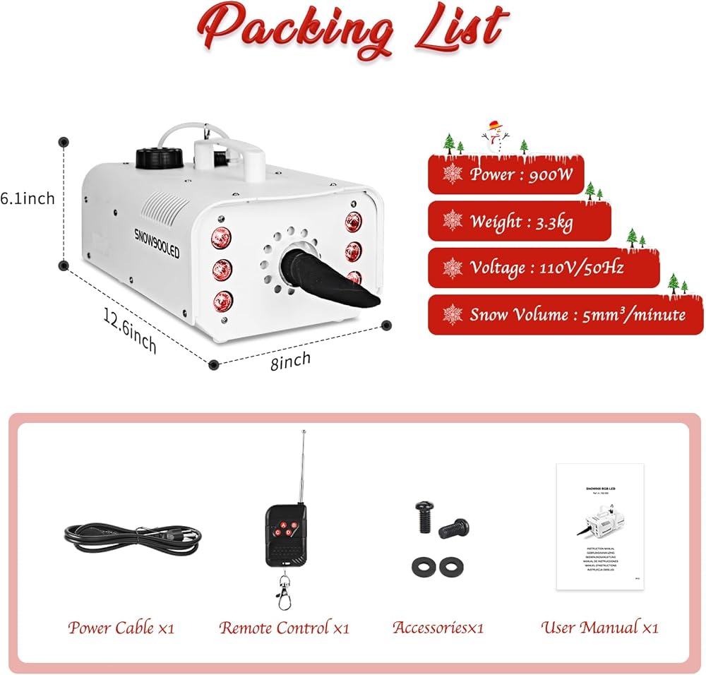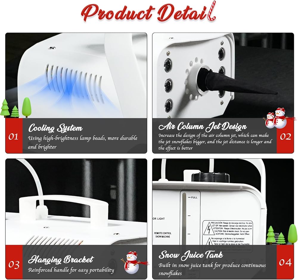 Enhance Any Occasion -- Add a touch of magic and charm to any occasion with the flake Snow Machine. Perfect for weddings, holiday celebrations, stage performances, and more, it is sure to leave a lasting impression on your guests.