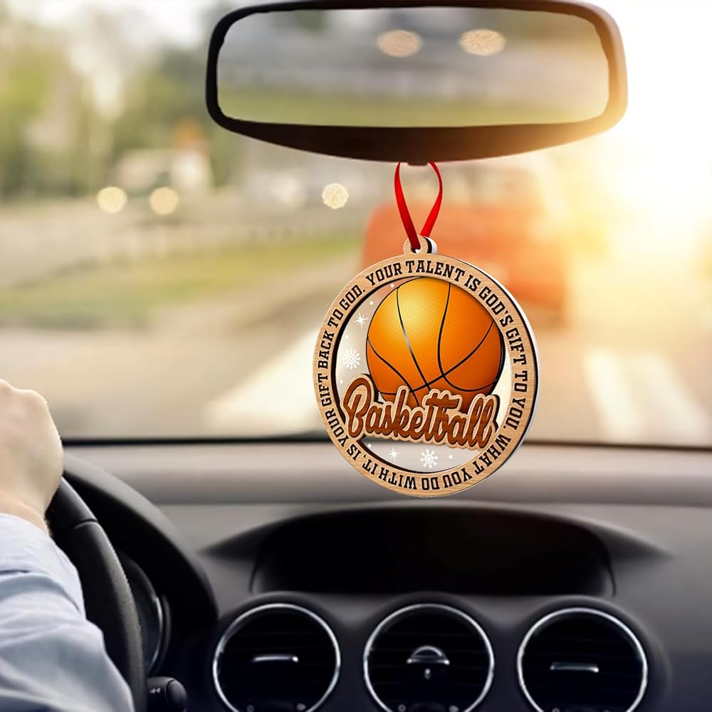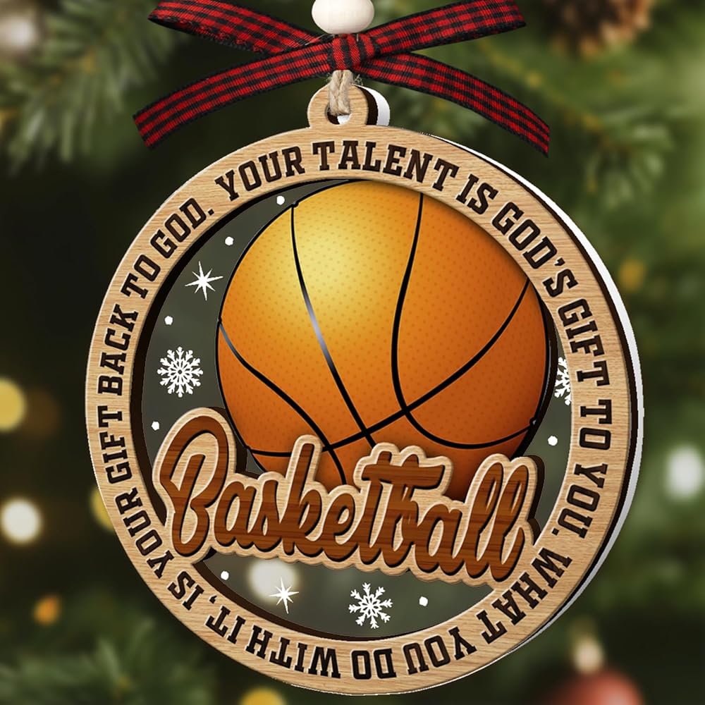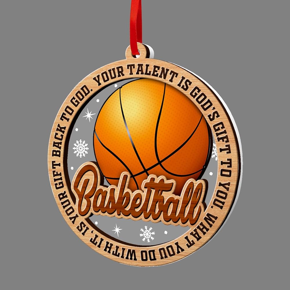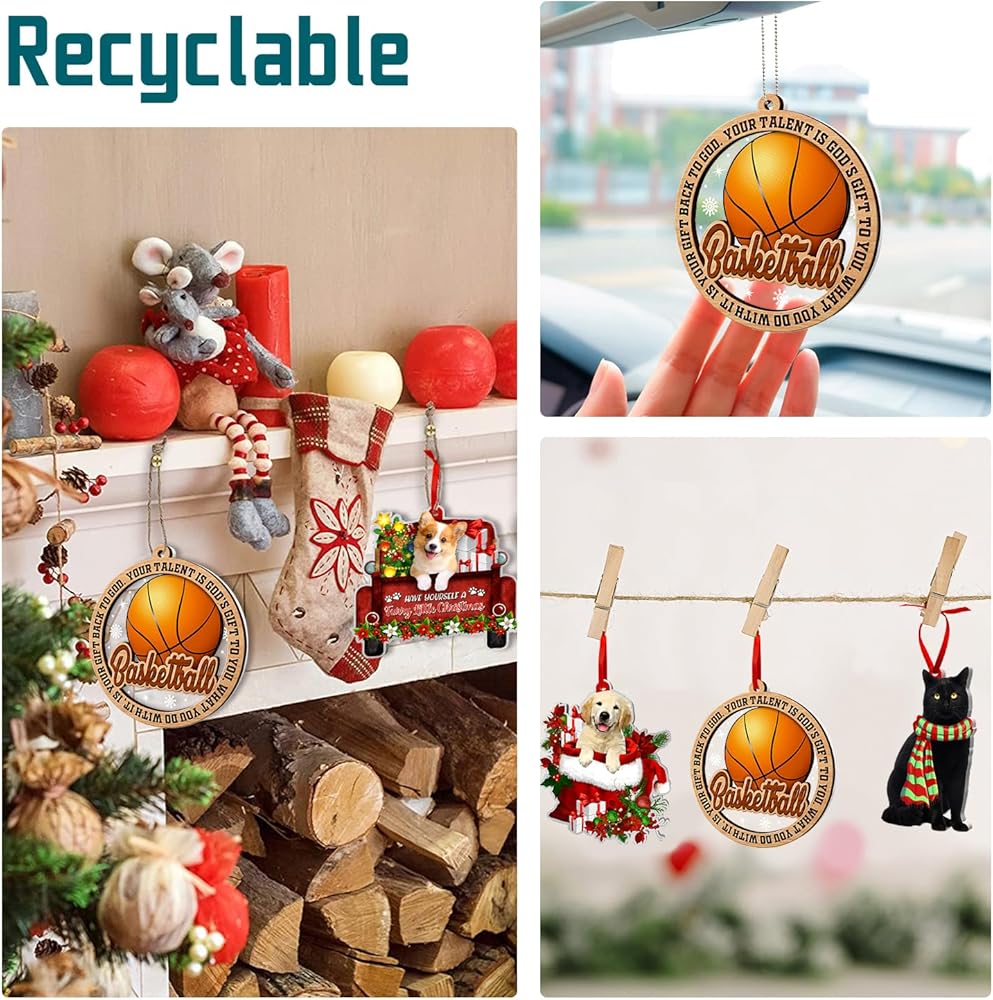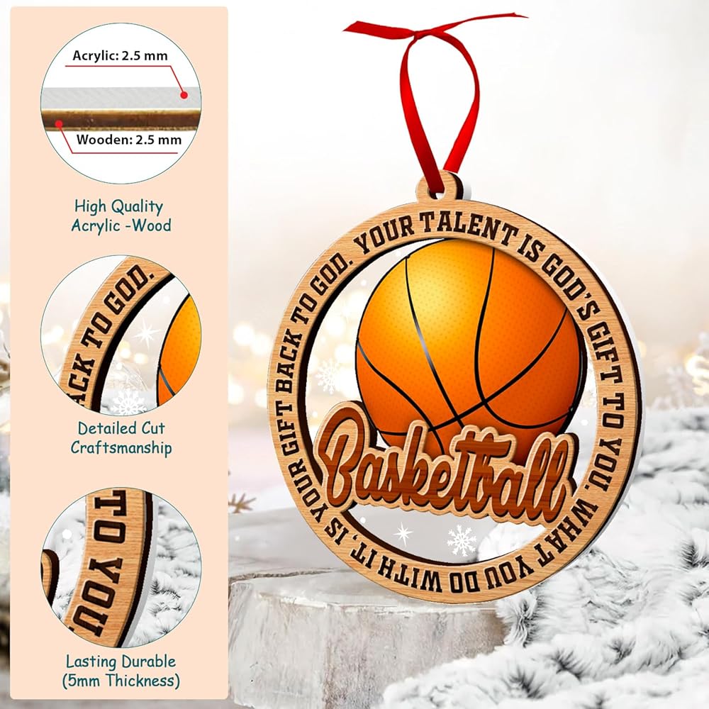 زينة كرة السلة لشجرة عيد الميلاد، زخرفة كرة السلة من طبقتين من الخشب والأكريليك للصبي والفتاة والأطفال زخرفة زخرفة لاعب كرة السلة، زخرفة مشجعي الرياضة 2023، هدايا كرة السلة لعيد الميلاد