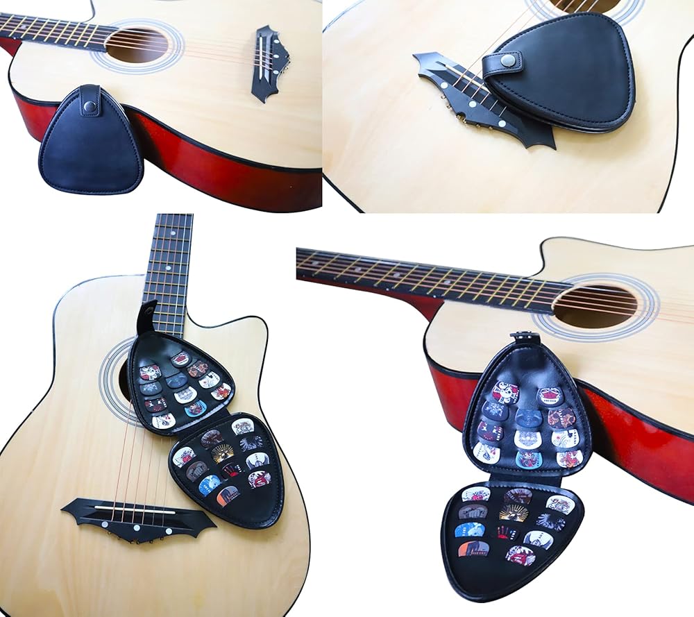 【تصميم كبس】♫ تم تصميم صندوق ريشة الجيتار بمشبك معدني من الستانلس ستيل، والذي يمكن إغلاقه بإحكام لمنع سقوطه وتجنب فقدان اللقطات.
