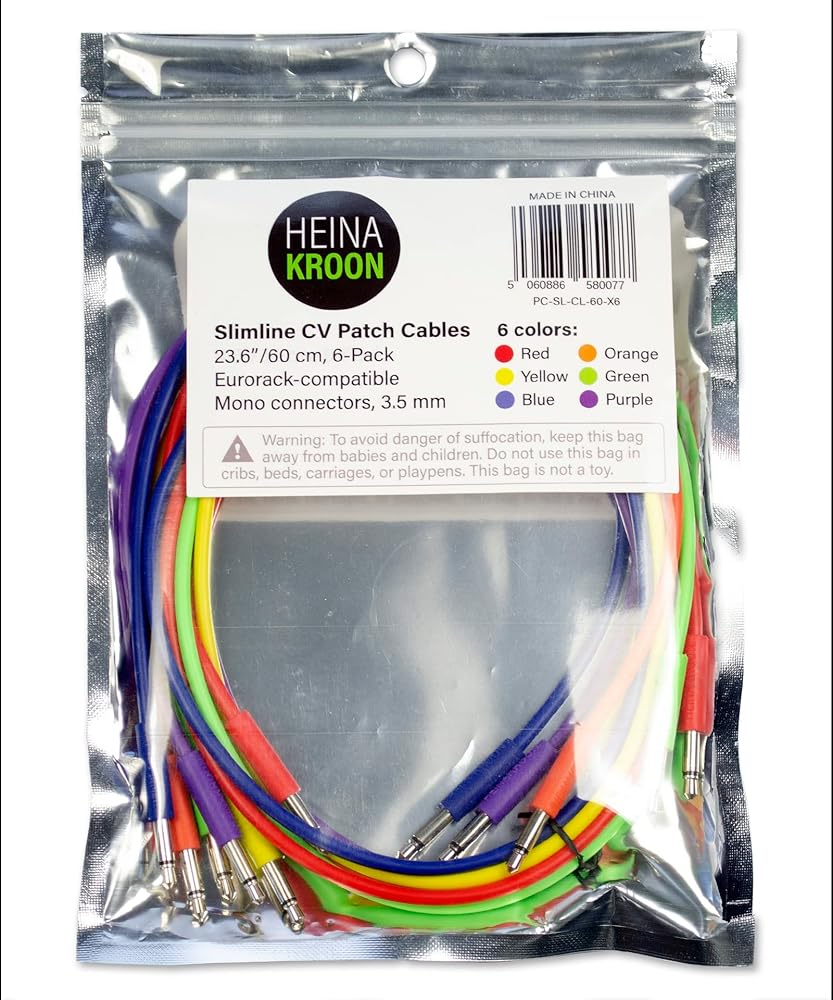 تعتبر كابلات التصحيح Heinakroon Slimline متعددة الألوان لـ Eurorack مثالية لتصحيح النظام المعياري أو التركيبات شبه المعيارية. تأتي كابلات التوصيل الرفيعة عالية الجودة بستة ألوان (الأحمر والبرتقالي والأصفر والأخضر والأزرق والأرجواني)، لتسهيل فصل التوصيلات المختلفة. مقابس مقاس 3.5 مم، متوافقة مع Eurorack تتوافق كابلات تصحيح CV متعددة الألوان Slimline الخاصة بنا تمامًا مع مقابس Eurorack الصغيرة القياسية مقاس 3.5 مم. الكابلات مغلفة بمادة PVC المرنة، مما يسهل التعامل معها من أجل عملية ترقيع مريحة. طول الكابل 11.8 بوصة يبلغ طول كابلات التصحيح Slimline 11.8 بوصة (30 سم) وتعمل بشكل جيد ضمن نظام معياري صغير إلى متوسط ​​الحجم. بالنسبة للأنظمة الأكبر حجمًا، نوصي بكابلات مقاس 23.6 بوصة (60 سم) بدلاً من ذلك. يبلغ قطر أسطوانات الكابلات Slimline 0.2 بوصة (6 مم) فقط، مما يضمن ملاءمتها حتى في أكثر الأماكن تشنجًا. من السهل الإمساك بالأسطوانات مما يجعل عملية الترقيع أمرًا سهلاً. مثالية للإعدادات المعقدة، حيث تعمل كابلات التصحيح Slimline على تسهيل عملية التصحيح