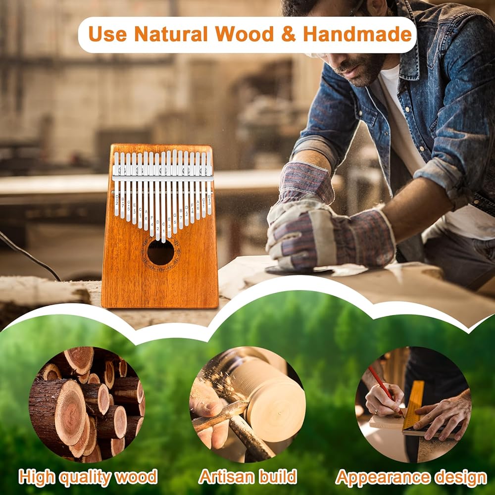 ♫ 【بيانو بإبهام الإصبع】هذه الآلات الموسيقية مصنوعة يدويًا من الخشب عالي الجودة وقضبان الفولاذ الخام مما يجعل صانع الإيقاعات أكثر رنينًا وأكثر دفئًا وصوتًا يدوم لفترة أطول.