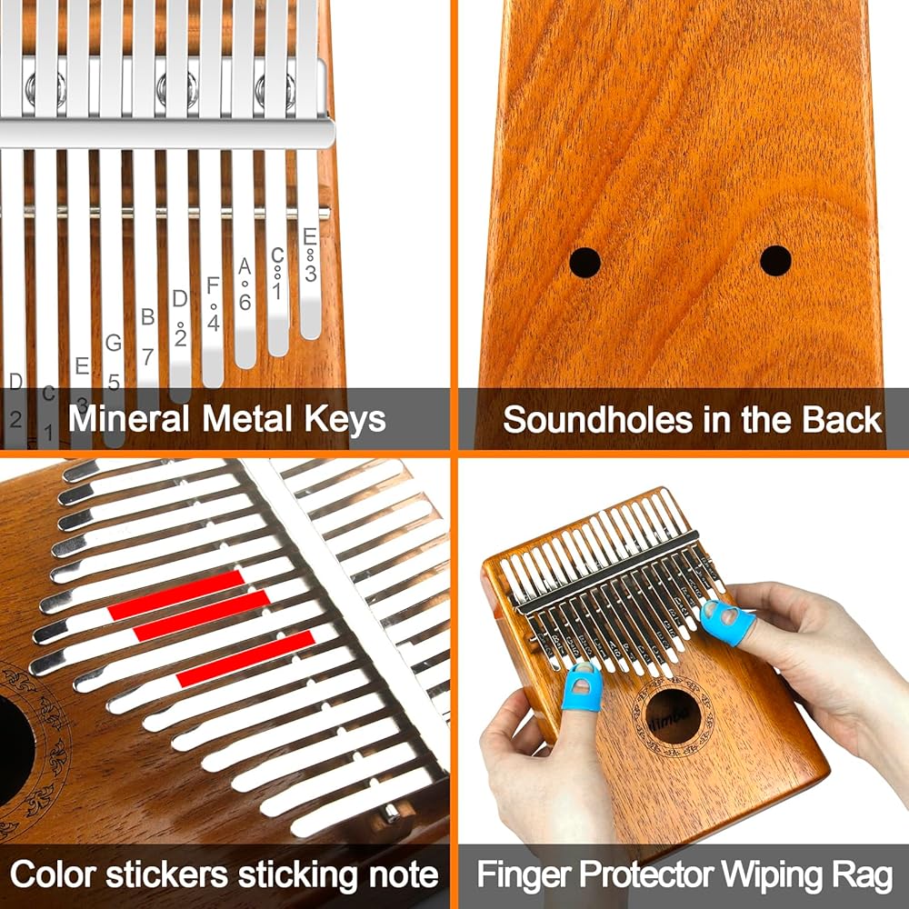♫【سهلة اللعب】مفاتيح الأكورديون منقوشة بالحروف والملاحظات، مما يساعد المبتدئين والأطفال على التعرف على المفتاح وذاكرته، ويقدم الكتيب طريقة استخدام وأداء كاليمبا بالتفصيل.