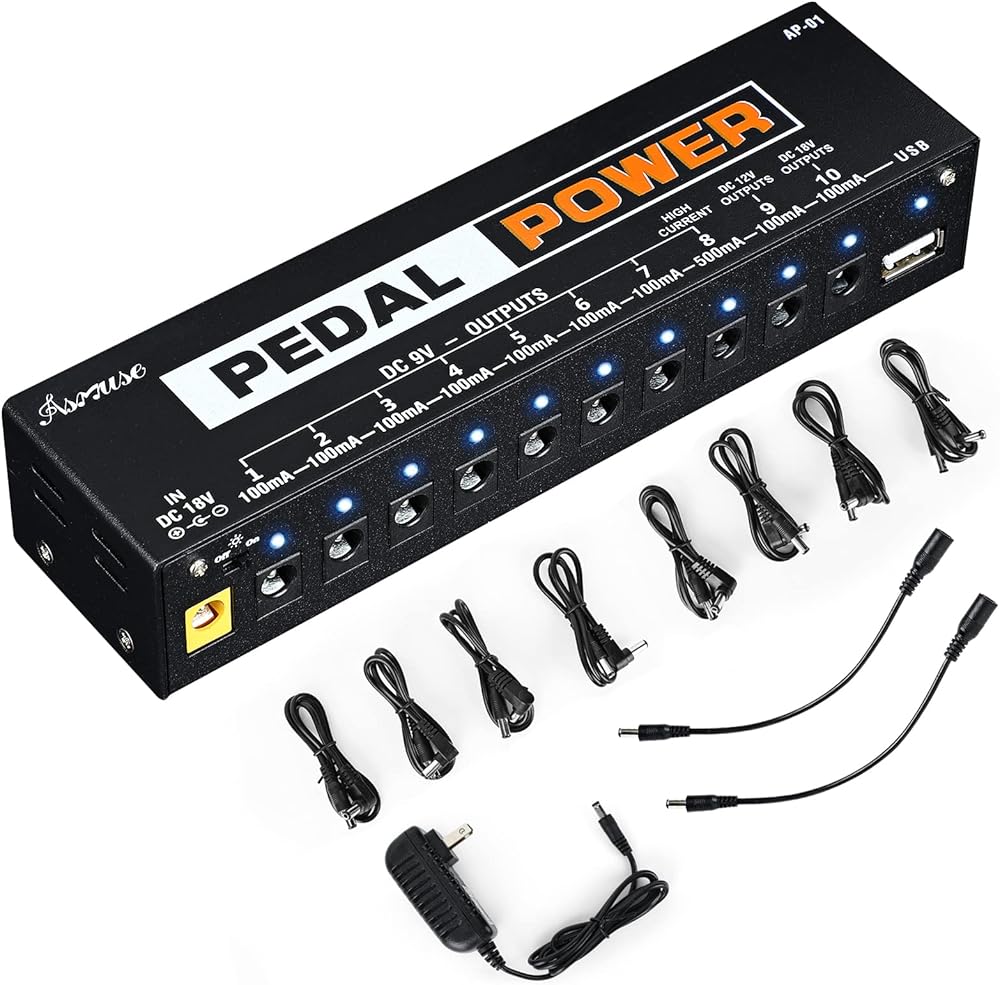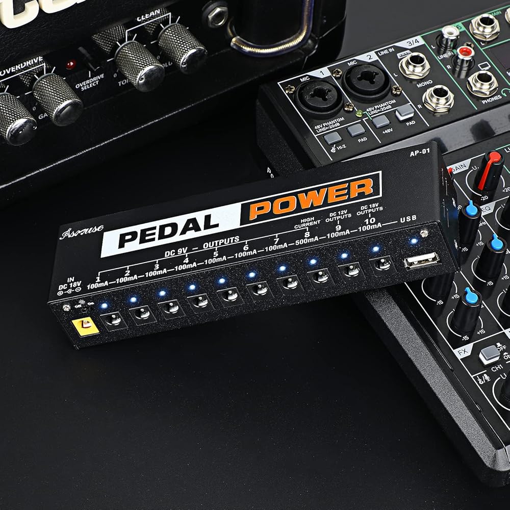 Asmuse Guitar Pedal Power Supply، 10 مخرج DC معزول لدواسات تأثيرات الجيتار 9V / 12V / 18V مع منفذ شحن USB مدمج للهاتف iPhone Pad iPad