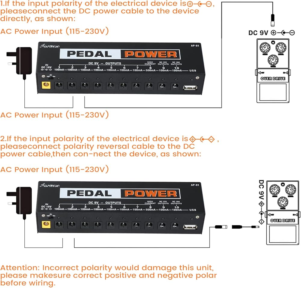 - دائرة قصر معزولة، محمية من التيار الزائد، محمية من الحرارة، من خلال اختبار CE، استخدام آمن بنسبة 100% مع سلسلة ديزي بدواسة الجيتار من Asmuse.