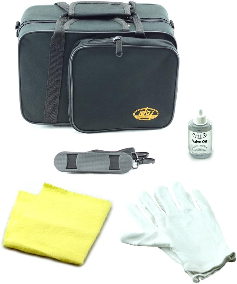 • Sky Band Approved Bb Pocket Trumpet with Case, Cloth, Gloves and Valve Oil, Top Quality Sound