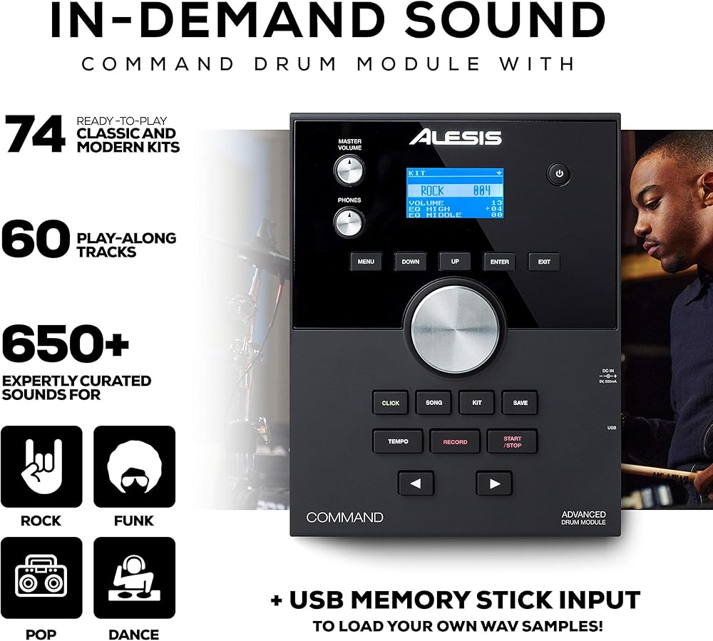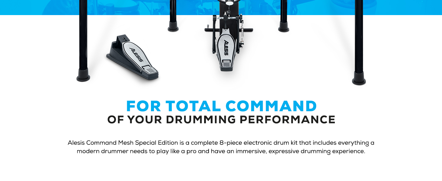 إن Command Mesh Special Edition عبارة عن مجموعة طبول إلكترونية توفر ميزات متميزة وتجربة لعب لا مثيل لها. يبدأ كل شيء مع منصات طبلة شبكية كبيرة تبدو طبيعية وتعزف تمامًا مثل الطبول الصوتية. الصنج قوي وسريع الاستجابة، مع وظيفة الاختناق عند الاصطدام والركوب. في قلب التجربة توجد وحدة الطبل المتقدمة مع مئات من الأصوات الكلاسيكية والحديثة الملهمة. لمزيد من التخصيص، يمكنك أيضًا تحميل الأصوات الخاصة بك عبر USB بالإضافة إلى تسجيل وحفظ أدائك مباشرة في الوحدة. تم تركيب الإصدار الخاص من Command Mesh على حامل ممتاز بأربعة أعمدة، وهو يوفر كل ما تحتاجه لبدء العزف على الطبول على الفور.