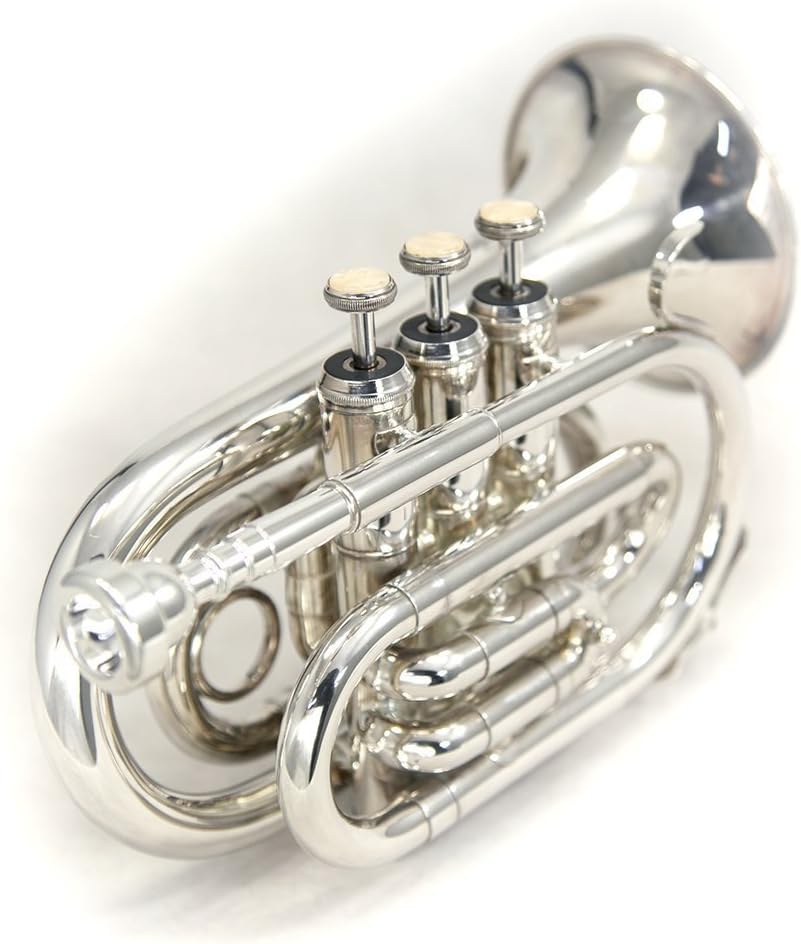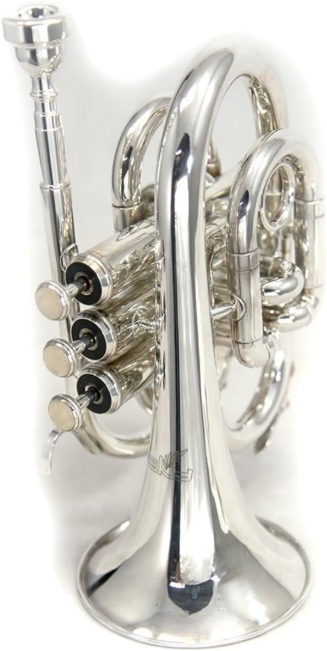 بوق جيب Bb مطلي بالفضة معتمد من Sky Band مع حافظة وقماش وقفازات وزيت صمام، يضمن صوتًا ممتازًا