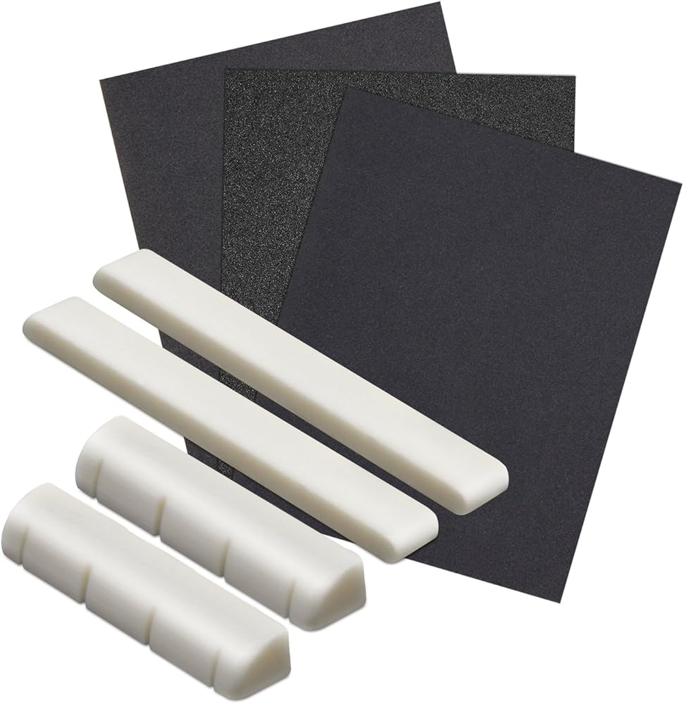 Blisstime مجموعتان من سرج العظام والجوز 3 قطع ورق رمل للقيثارة مصنوعة من عظم حقيقي