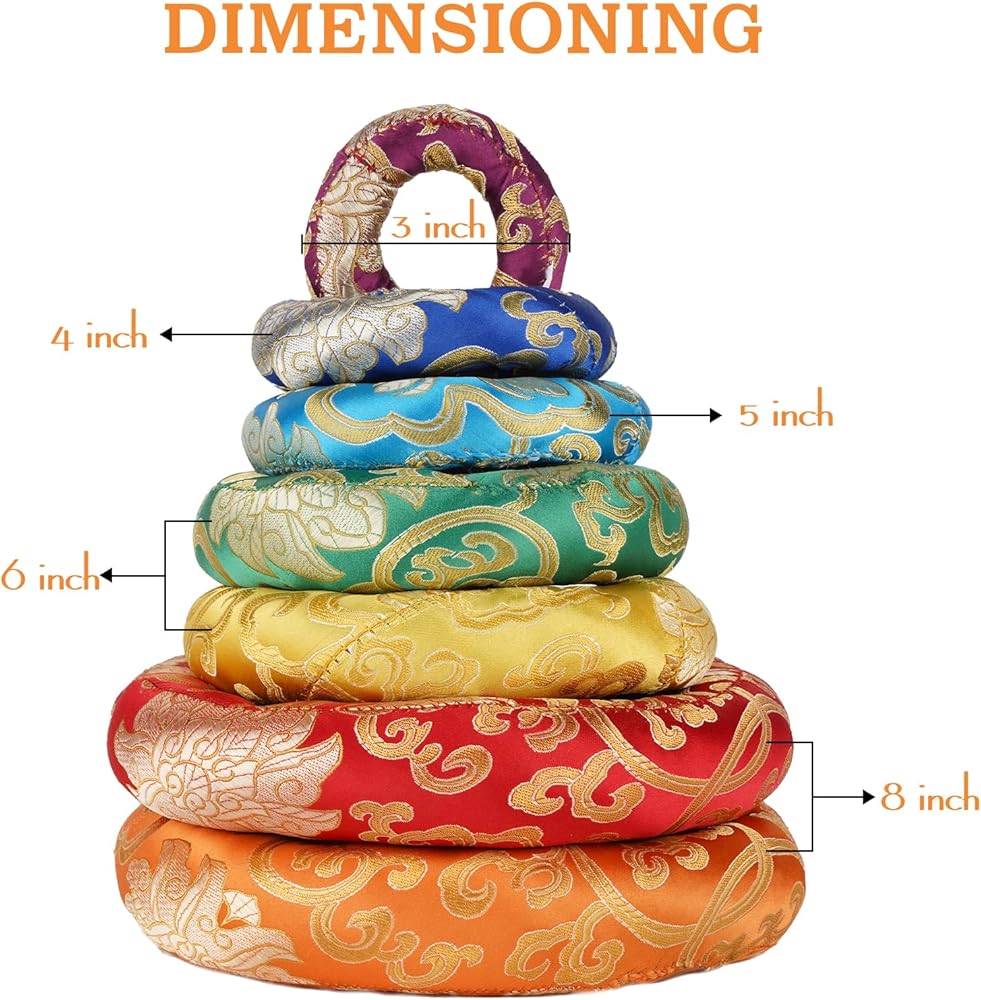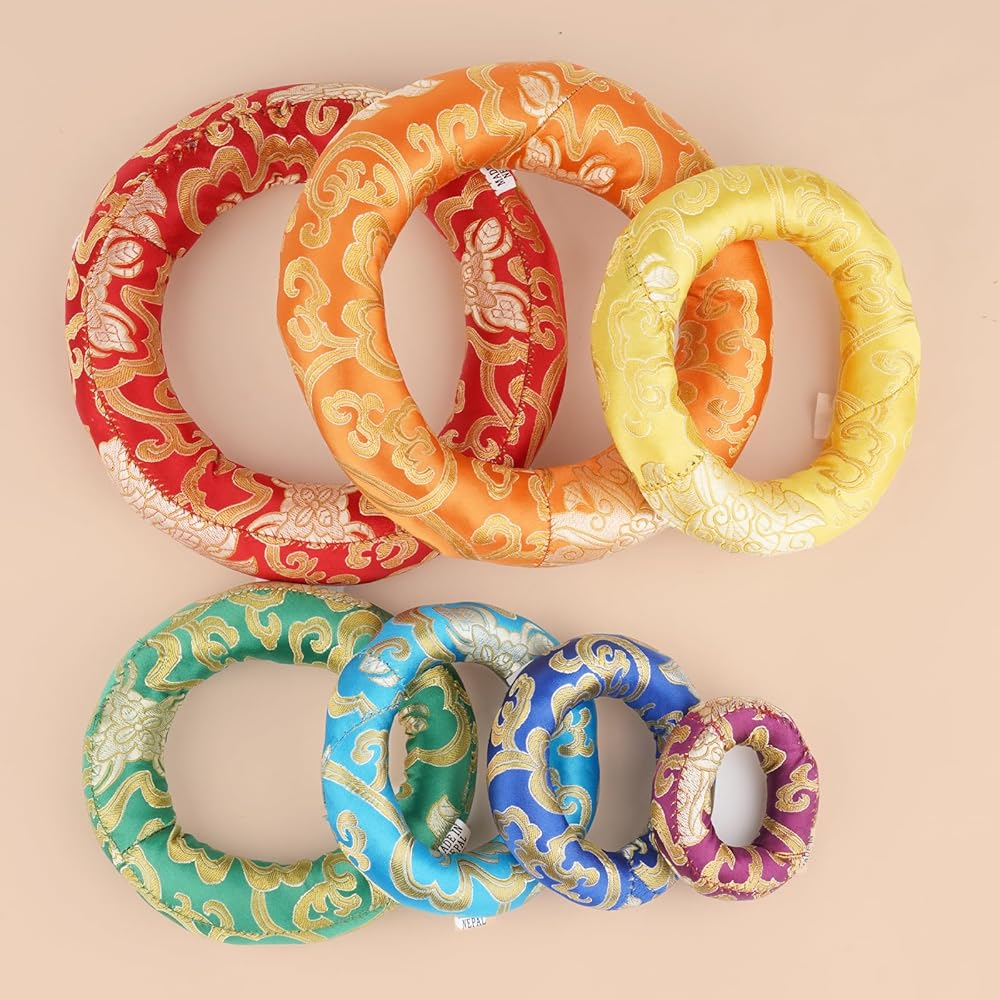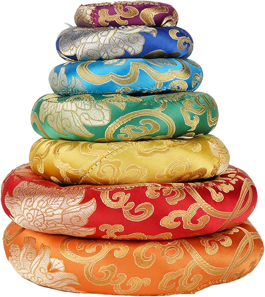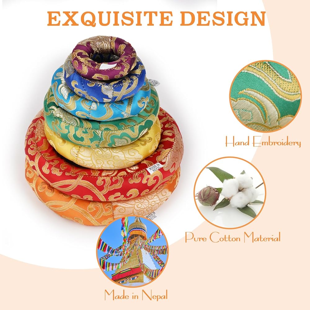 7 قطعة وسادة وسادة حلقية من الدمشقي الحريري، وسادة حلقية 7 ألوان لوعاء الموسيقى التبتية 100% صناعة يدوية نيبالية