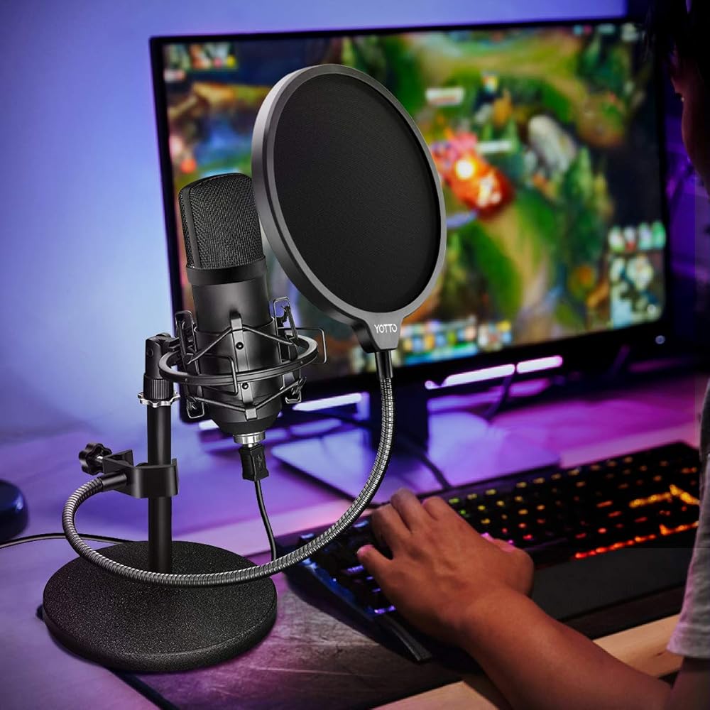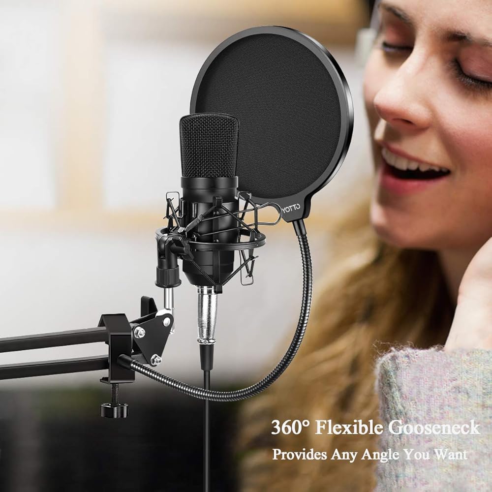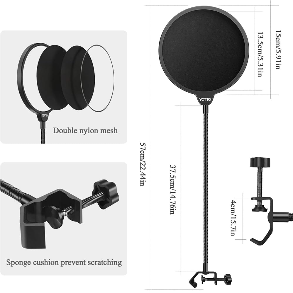 يوتو غطاء ميكروفون واقي من الرياح بتصميم ميكروفون بوب فلتر ستوديو مع عنق اوزة مرن ومشبك لبلو يتي اوديو تيكنيكا وجميع الميكروفونات