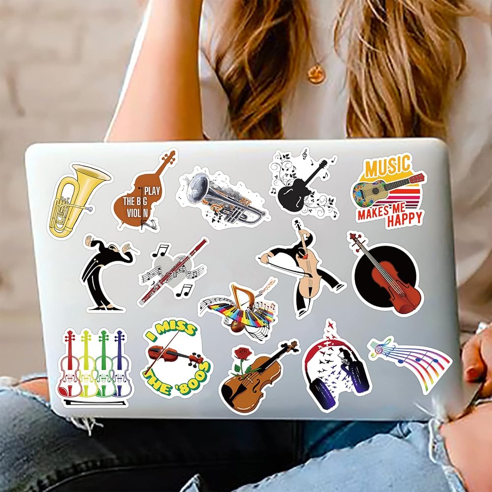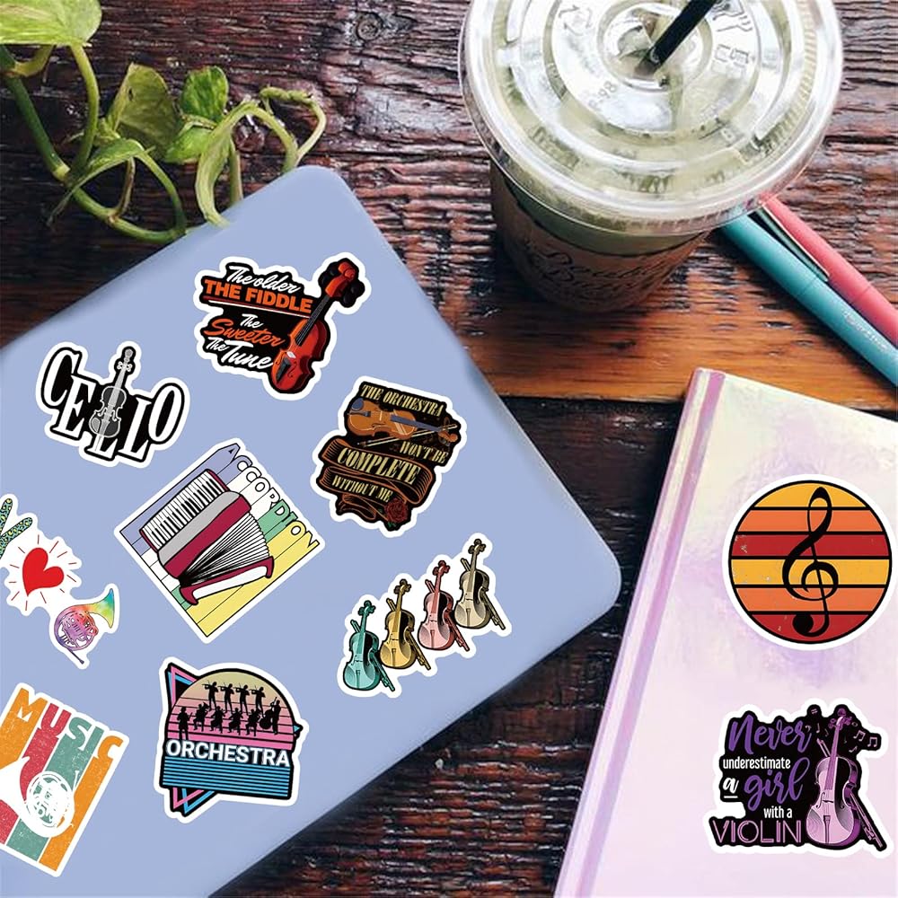 مجموعة ملصقات موسيقية اوركسترا لزجاجات المياه من الفينيل المقاوم للماء للاطفال والمراهقين ملصقات جمالية للموسيقى الكلاسيكية للابتوب والقوارير المائية والكمان - 100 قطعة