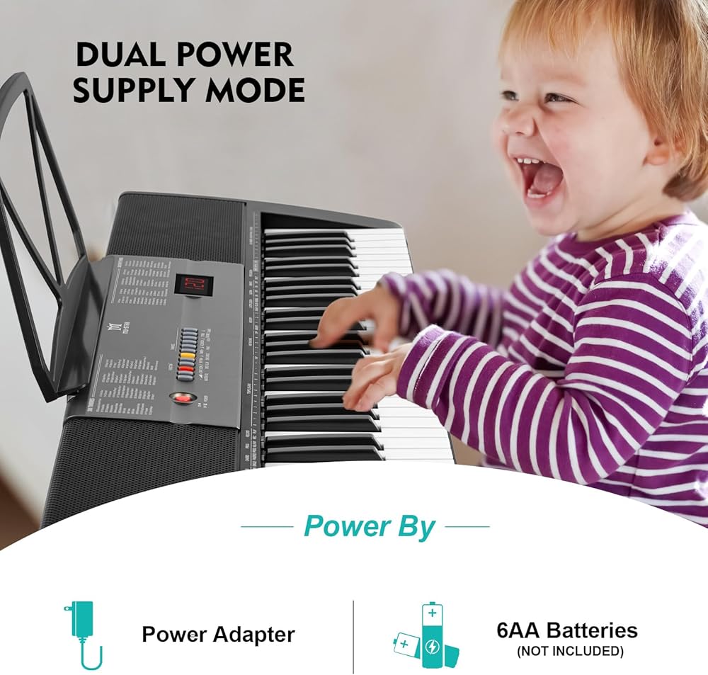 بيانو لوحة المفاتيح للمبتدئين - تحتوي لوحة مفاتيح MUSTAR على بندول إيقاع مدمج و3 أوضاع تعليمية ممتازة - وضع مفتاح واحد، ووضع المتابعة، ووضع المجموعة، والتي يمكن أن تساعد المبتدئين على البدء بسرعة. يتميز بـ 61 مفتاحًا حساسًا للمس، أو العزف بكثافة للحصول على نغمات أعلى أو العزف بنعومة للحصول على أصوات أكثر هدوءًا، سيمنحك بيانو لوحة المفاتيح هذا إحساسًا بالبيانو التقليدي مع الحفاظ على تصميم محمول وصغير الحجم.