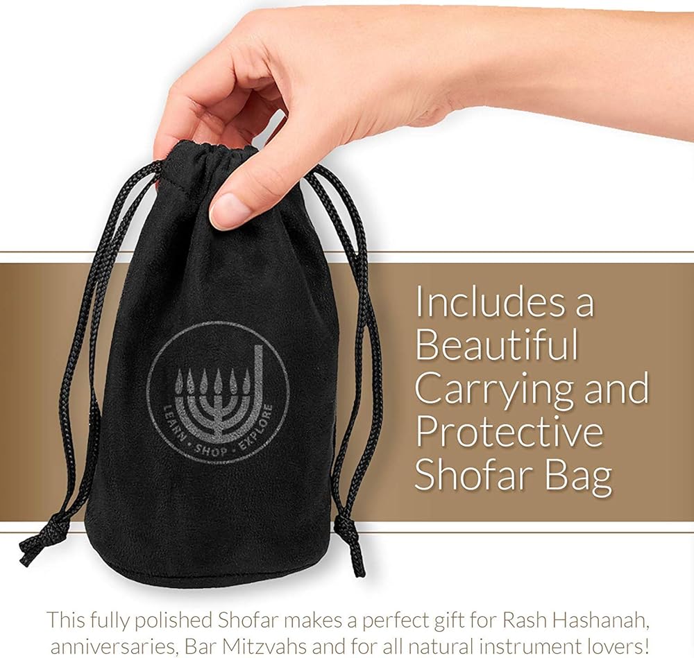 تشتمل على حقيبة شوفار ودليل نفخ - تشتمل كل عملية شراء على حقيبة مخملية مجانية مثل حقيبة شوفار برباط لحماية الشوفار الخاص بك، كما تتضمن دليل نفخ الشوفار مع تعليمات حول كيفية النفخ والعناية بالشوفار الخاص بك.