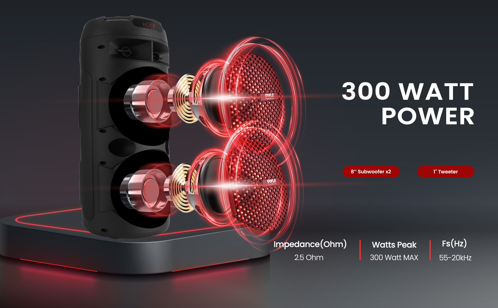 مكبر صوت بلوتوث محمول من بايل - 300 وات مزدوج 8 بوصات نظام صوت كاريوكي BT داخلي/خارجي قابل لإعادة الشحن - TWS، أضواء الحفلات، شاشة LED، FM/AUX/MP3/USB، 6.5 مم، ميكروفون لاسلكي بمقبض للحمل، جهاز تحكم عن بعد