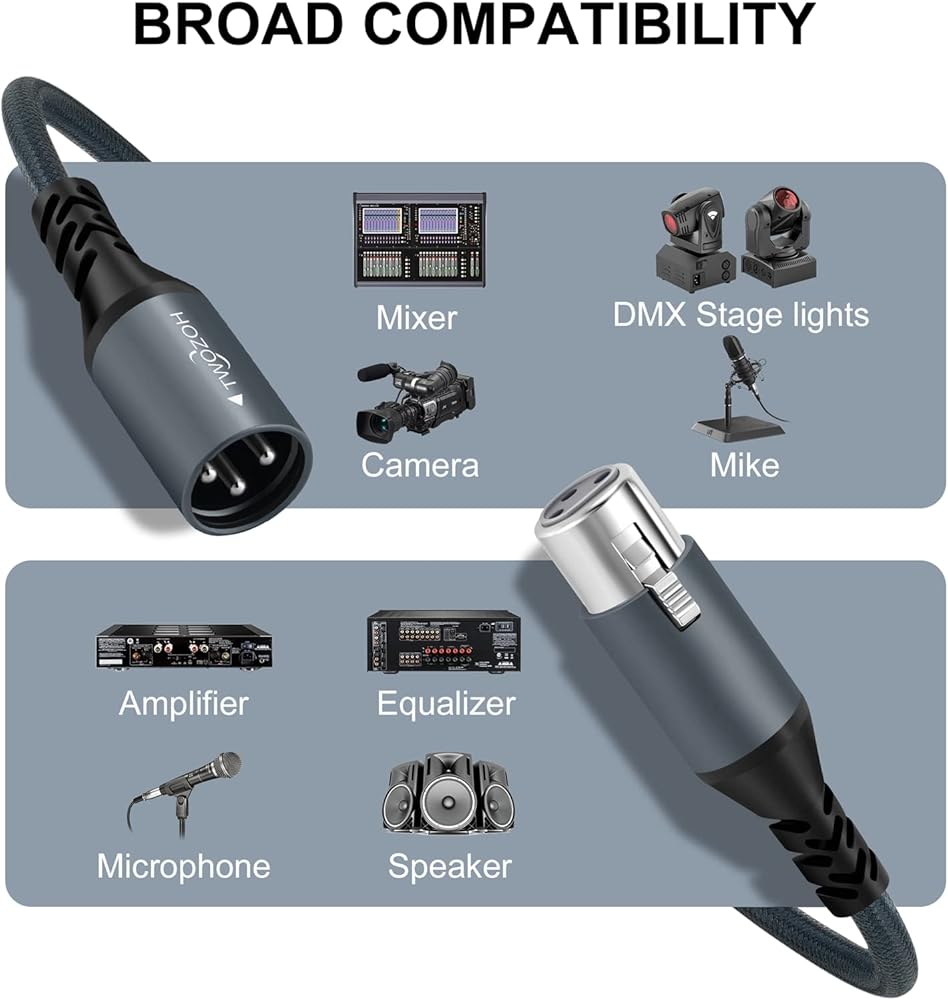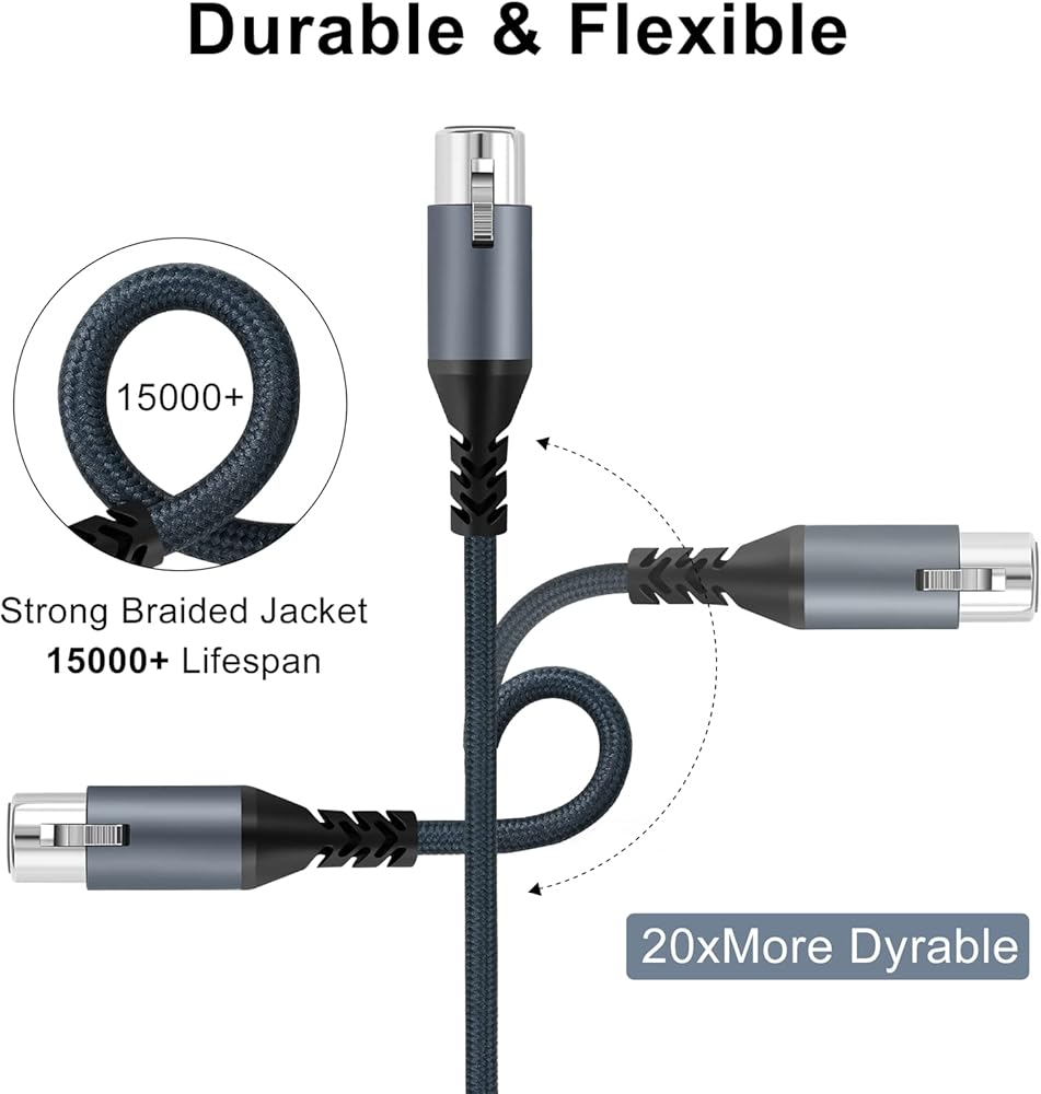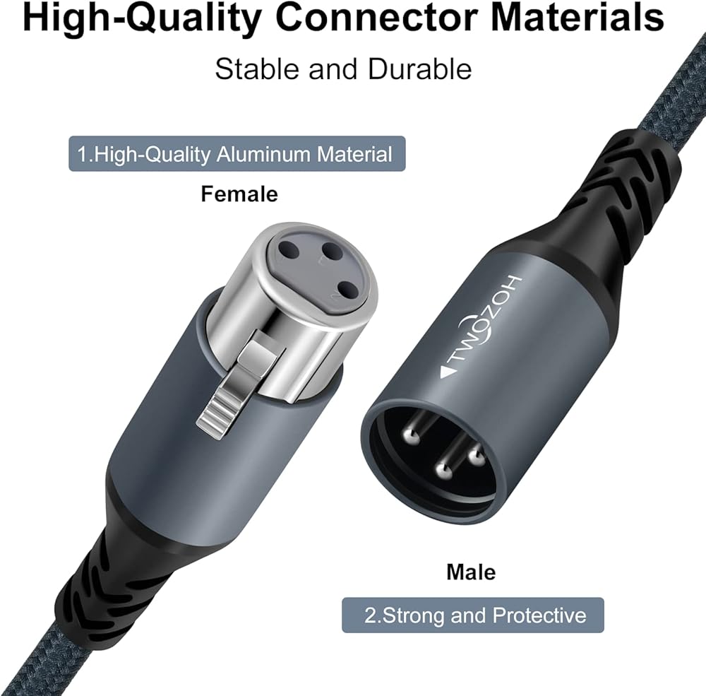 🎤 طبقات حماية متعددة: كابل ميكروفون Twozoh شديد التحمل XLR ذكر إلى أنثى مصمم بغطاء مجدول من النايلون يعزز المرونة والمتانة، وتم اختبار التوصيل والفصل لأكثر من 15000 مرة.