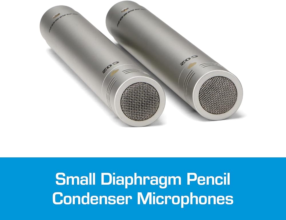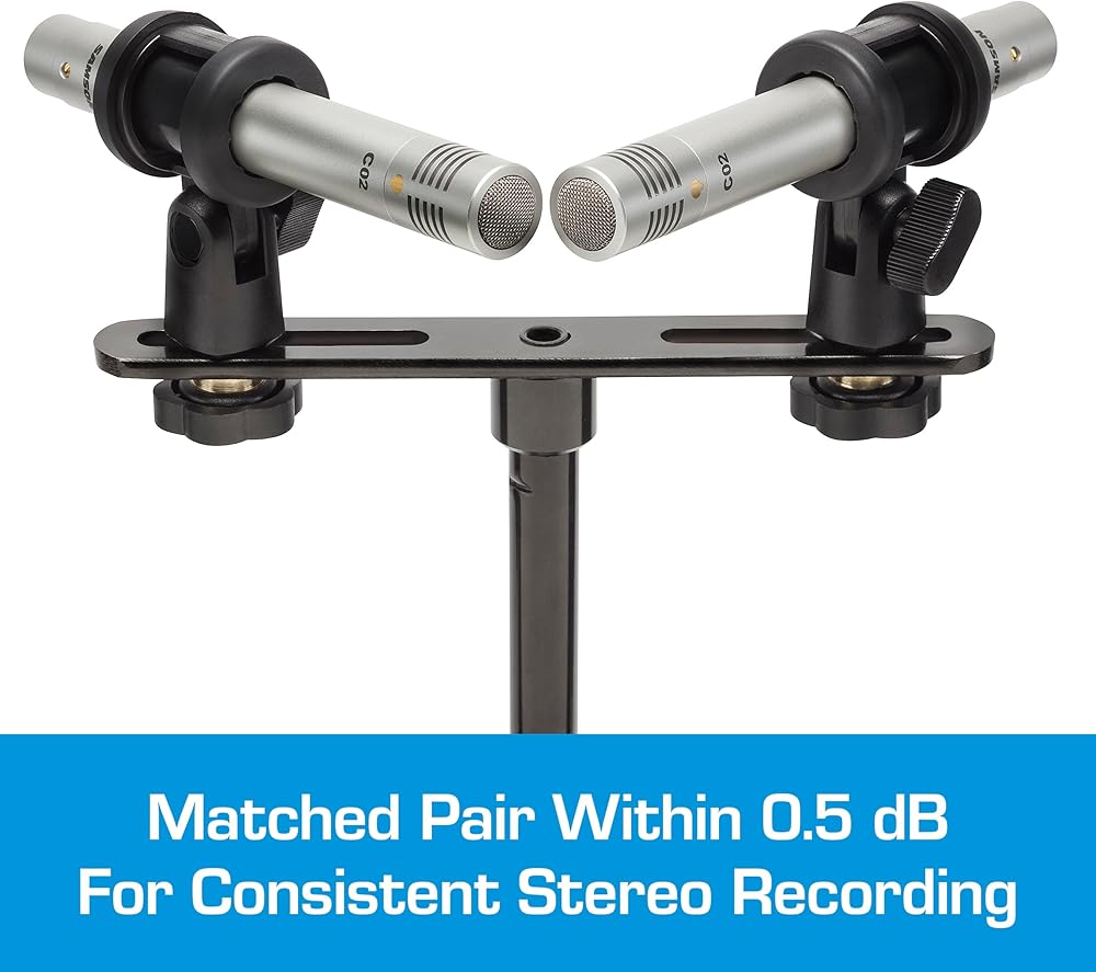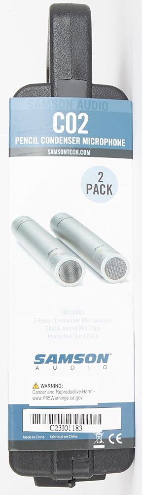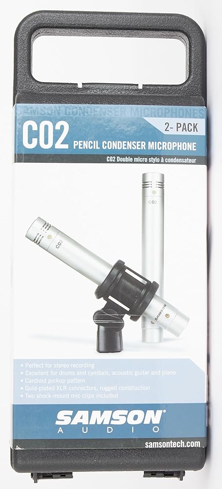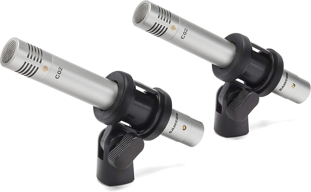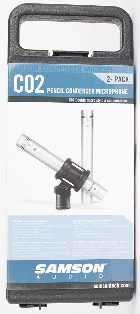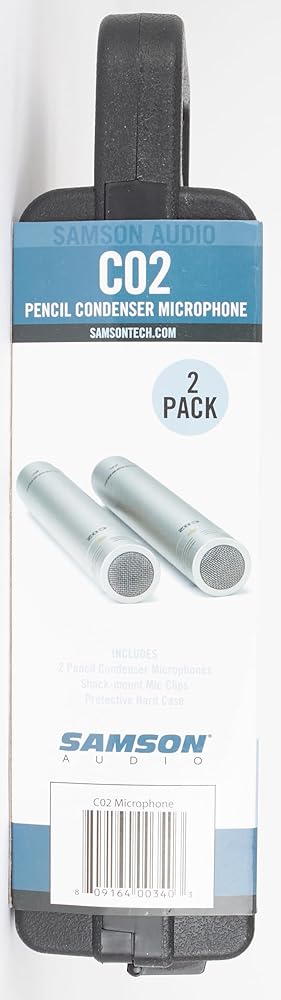توفر ميكروفونات Samson C02 المكثفة أداءً صوتيًا عالي الجودة في حزمة ميسورة التكلفة. تُباع ميكروفونات C02 كزوج، وهي مثالية في التطبيقات التي تتطلب مواضع متعددة للميكروفون، بما في ذلك أدوات الإيقاع مثل الصنج والآلات العلوية بالإضافة إلى الآلات الوترية مثل الجيتار والكمان. يساعد استخدام ميكروفونات متعددة على ضمان التقاط الصوت بدقة مع زيادة التفاصيل لتسجيلاتك.