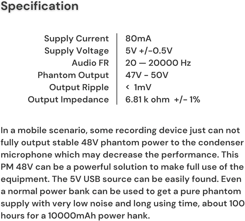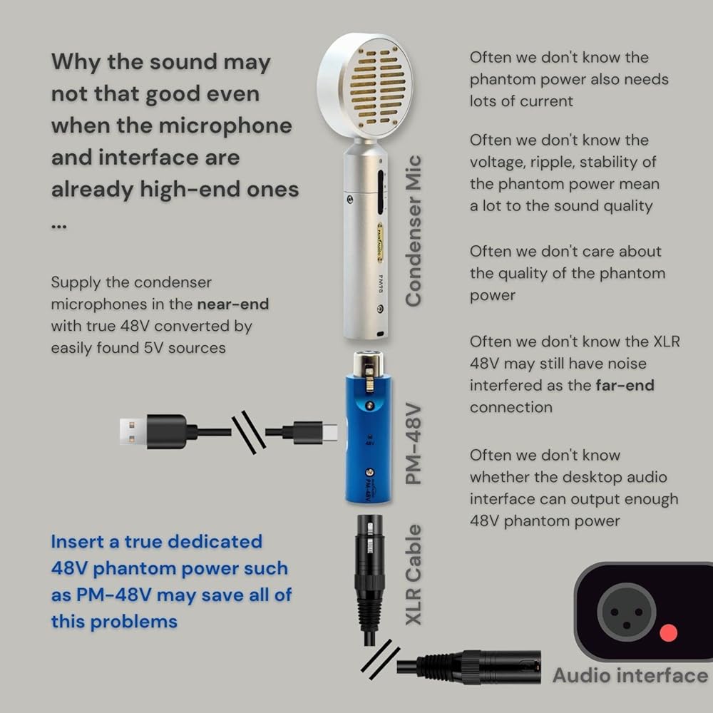 صوت الطلاء PM-48V نوع C إلى 48 فولت XLR محمول صغير فانتوم باور ضوضاء منخفضة للغاية إخراج كامل لأي ميكروفون مكثف