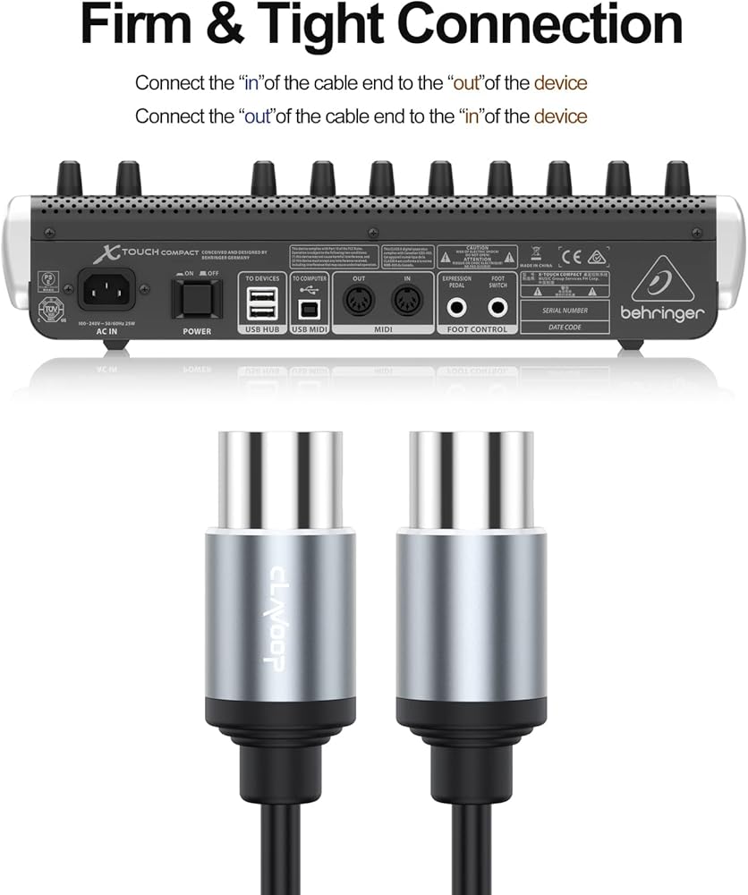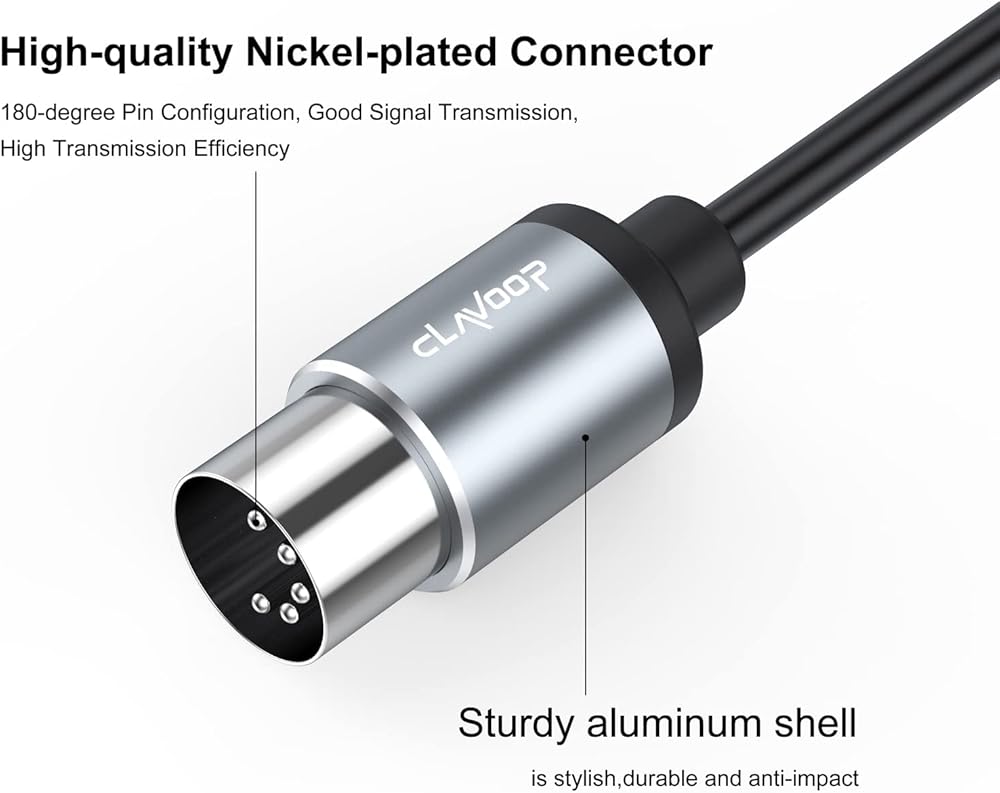 【نقل إشارة ثابت】جزء 5 دبابيس موصل واجهة CLAVOOP MIDI مصنوع من مادة مطلية بالنيكل، السلك مدمج مع سلك نحاسي خالٍ من الأكسجين ودرع مزدوج لمنع التداخل الكهرومغناطيسي/الترددات اللاسلكية، وتعزيز قمع الضوضاء الداخلية والقضاء على الجدائل. تشويه التفاعل، تقليل فقدان الإشارة، كفاءة نقل عالية، بدون تأخير، جودة عالية لضمان استقرار نقل الإشارة.