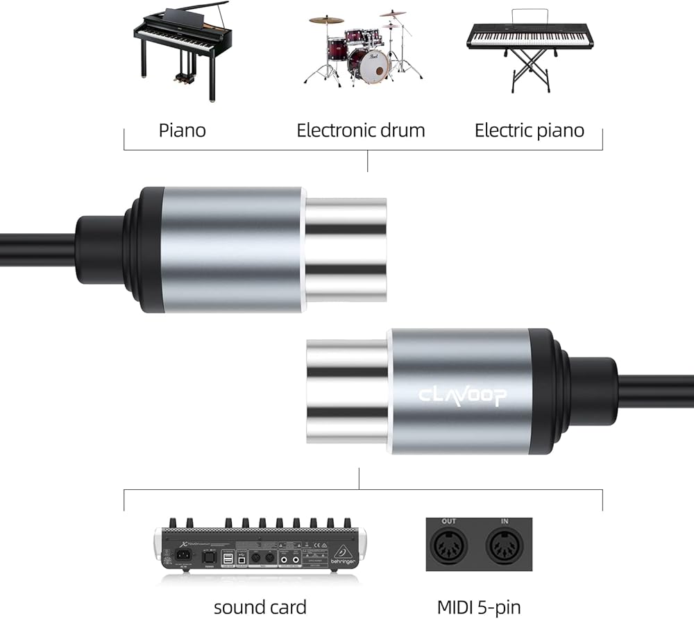 CLAVOOP MIDI كابل 10 أقدام، 5 دبوس DIN MIDI ذكر إلى ذكر كابلات للوحة لوحة المفاتيح MIDI Beat Maker مضخم الصوت الجيتار متعدد التأثيرات Synth بطاقة الصوت الخارجية