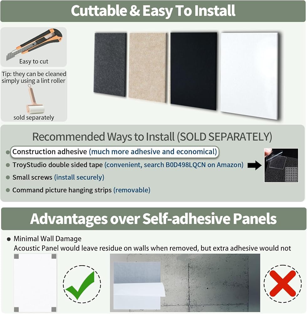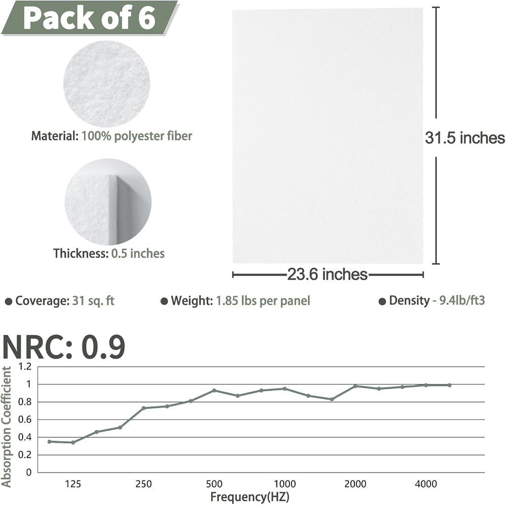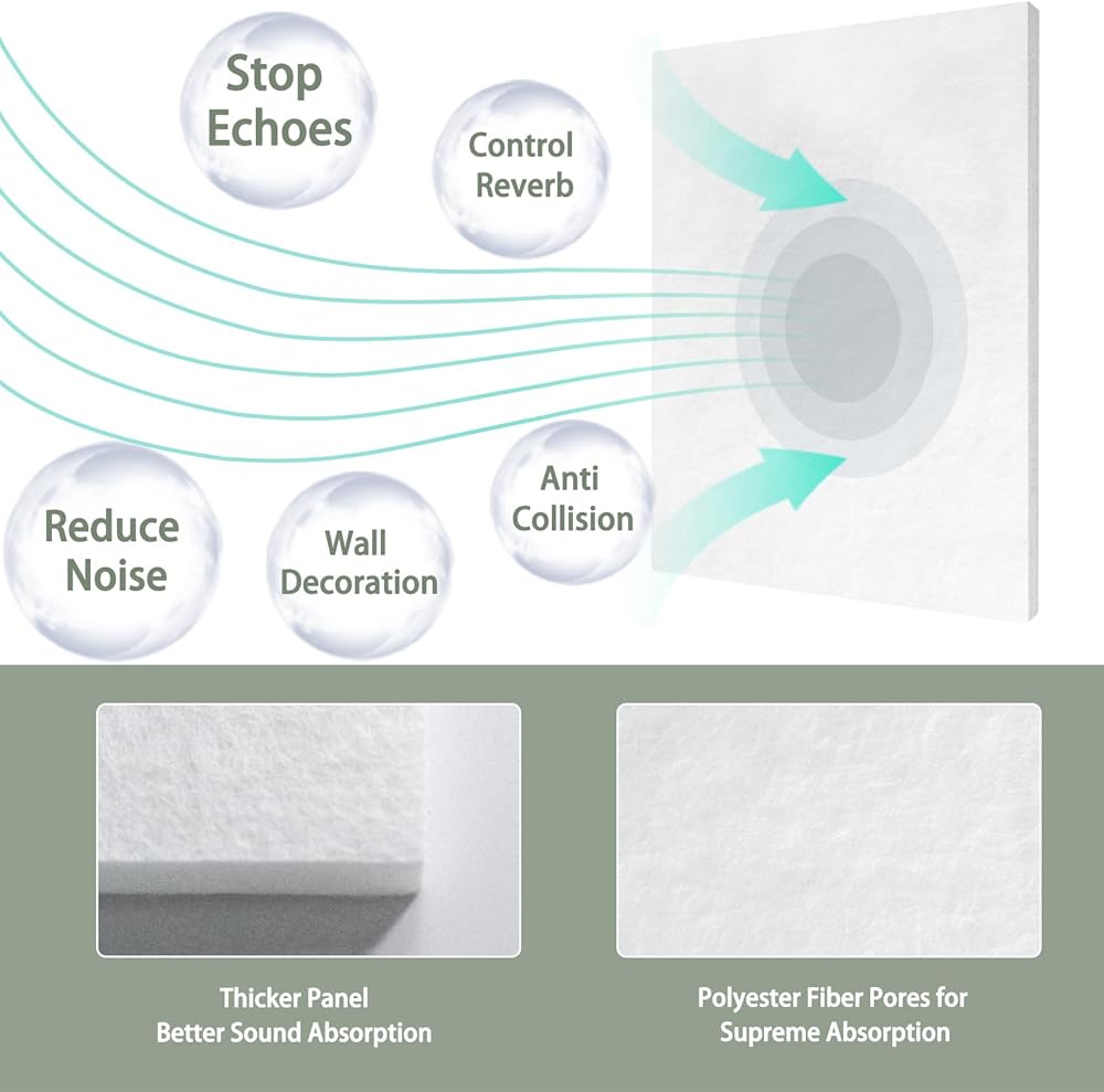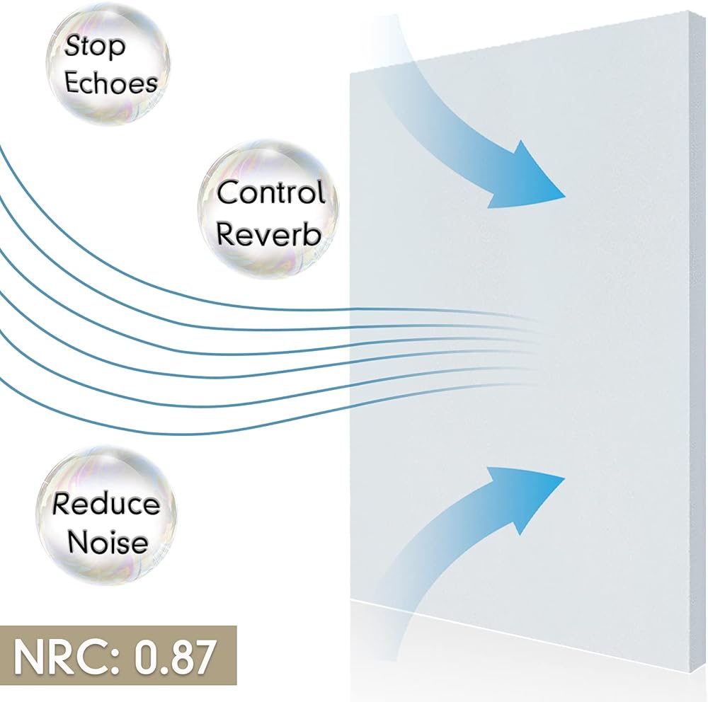 • [أداء صوتي متميز] - ألواح تخفيف الصوت كثيفة وسميكة؛ رائعة في إلغاء تردد الغرفة، والأصداء، والموجات الدائمة، والضوضاء؛ NRC (معامل خفض الضوضاء): 0.87. متوسط ​​معامل الامتصاص: 0.77