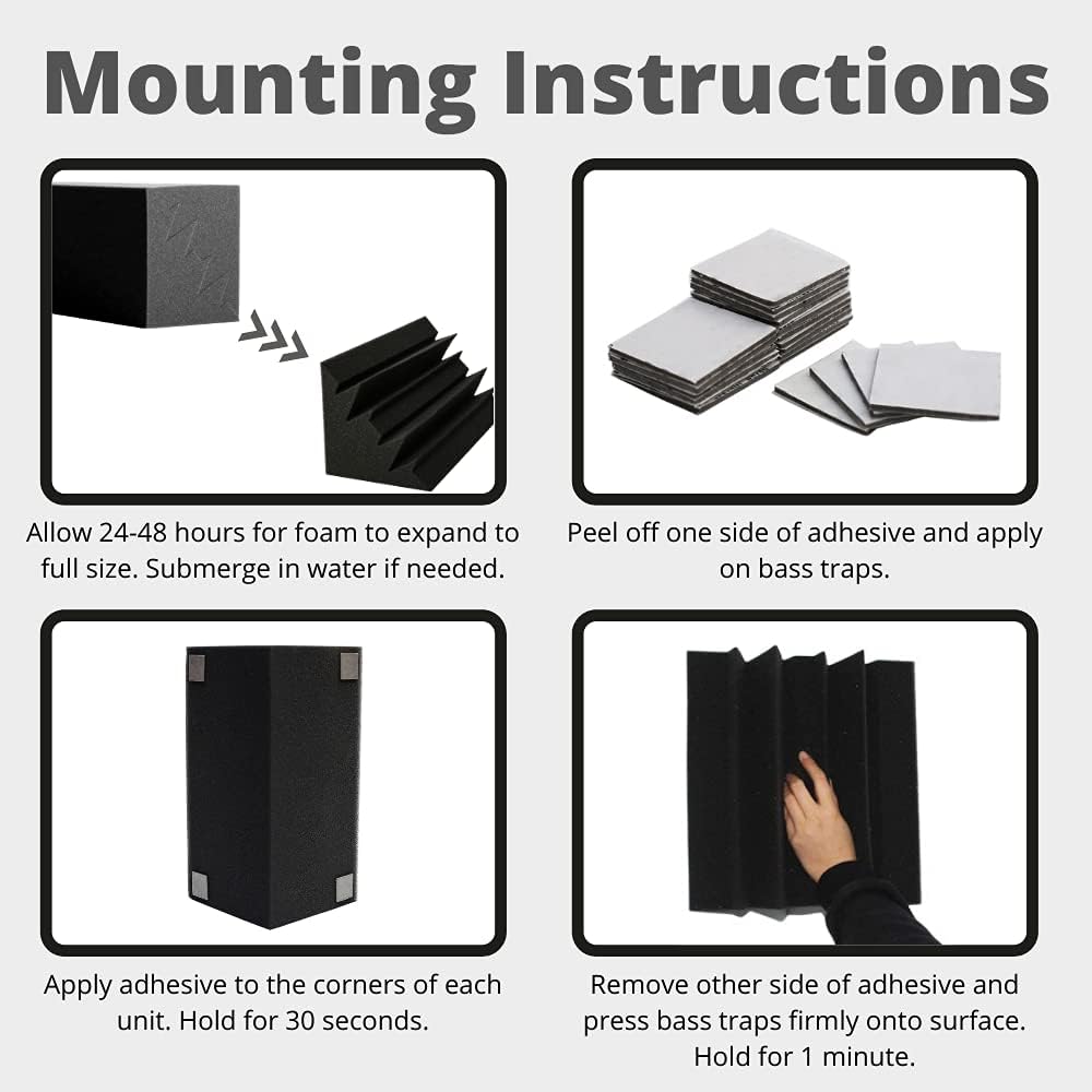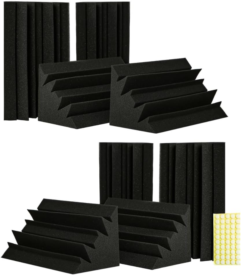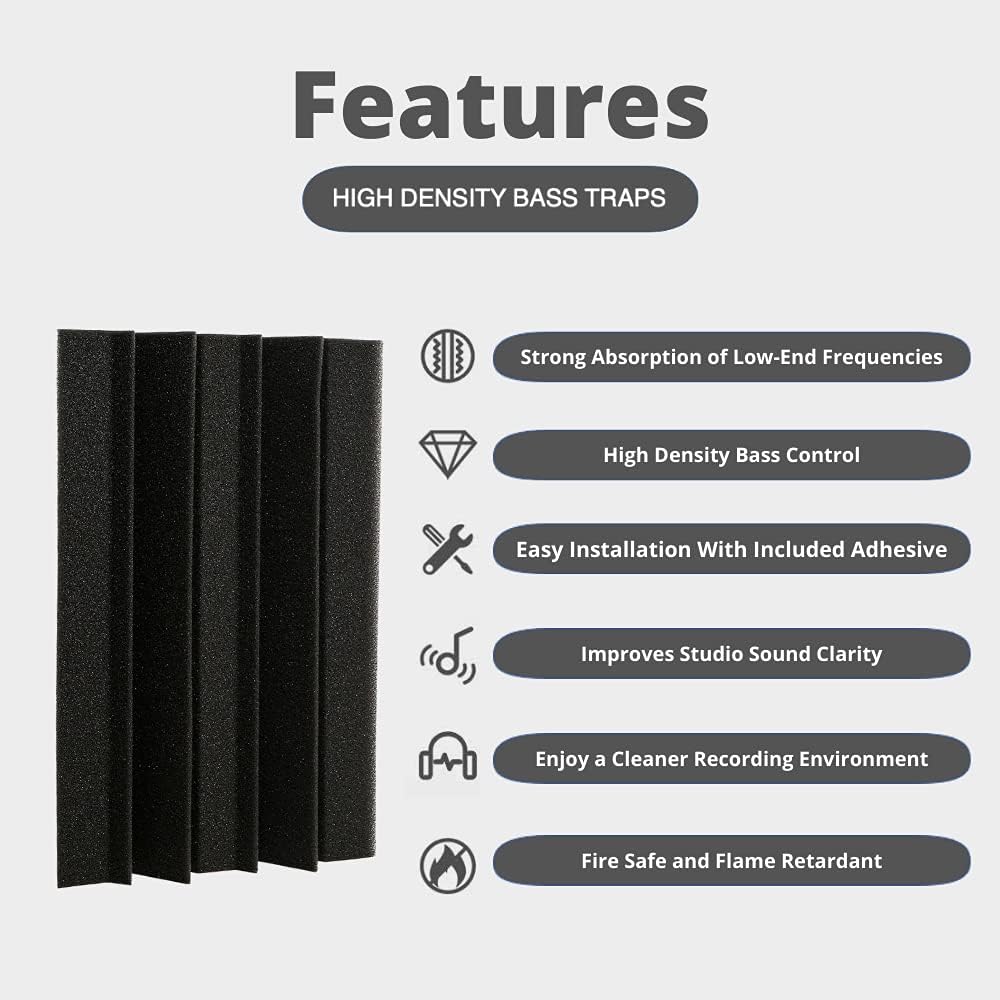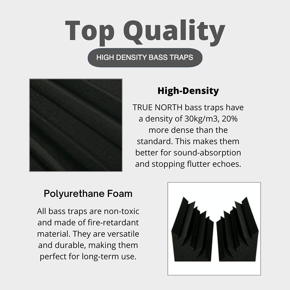 مصائد جهير TRUE NORTH مع 8 عبوات لاصقة - معالجات صوتية لاستوديو التسجيل - معالجة صوتية للوحة مصيدة جهير من إسفنج الاستوديو - زاوية إسفنجية صوتية لاحتجاز الجهير، مصائد جهير زاوية إسفنجية صوتية