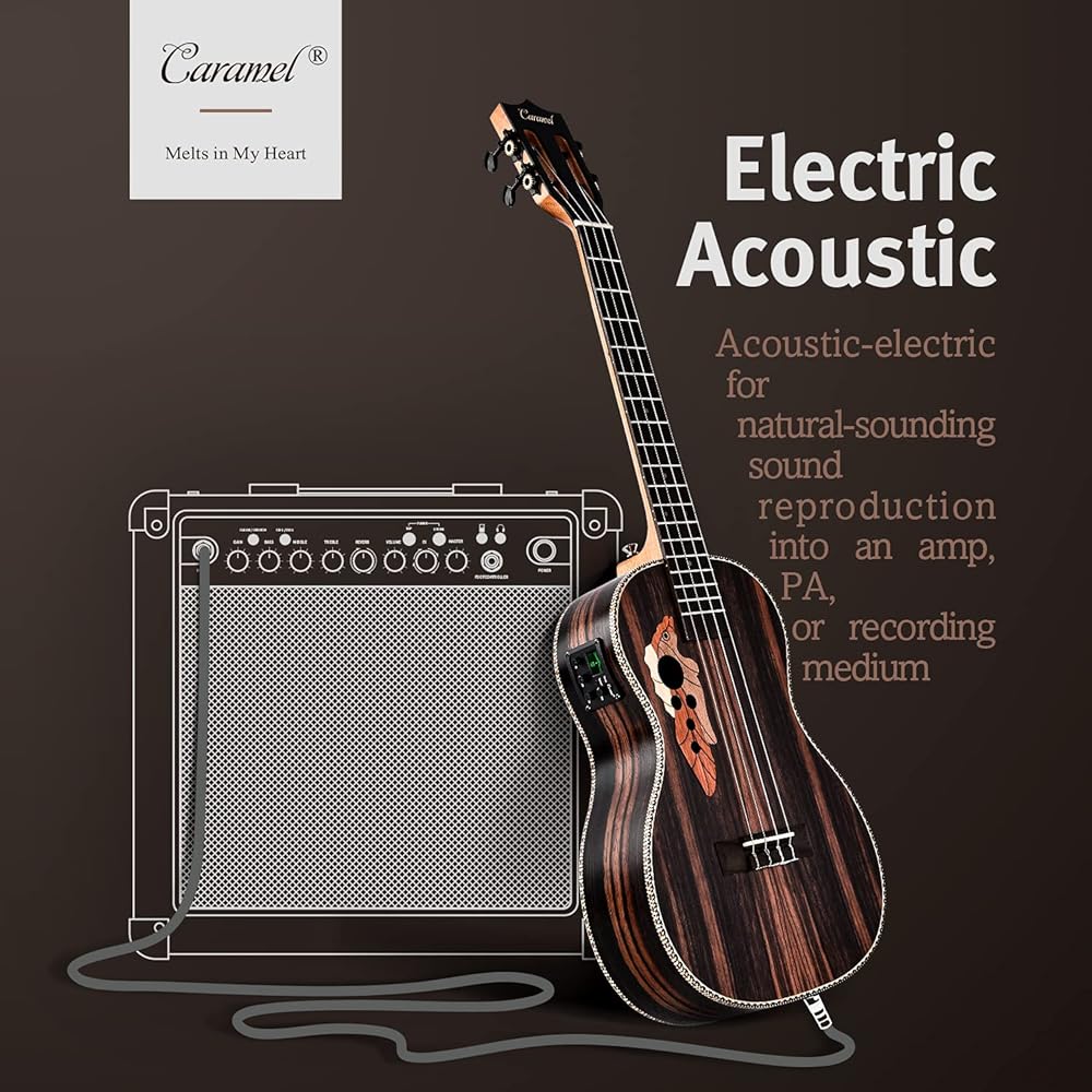 الكراميل خشب الأبنوس الباريتون القيثارة 30 بوصة الخشب LCD اللون عرض الكهربائية القيثارة عدة هاواي المبتدئين الغيتار حزمة حزمة حقيبة أزعج، حزام، سلاسل، مجموعة جبل الجدار