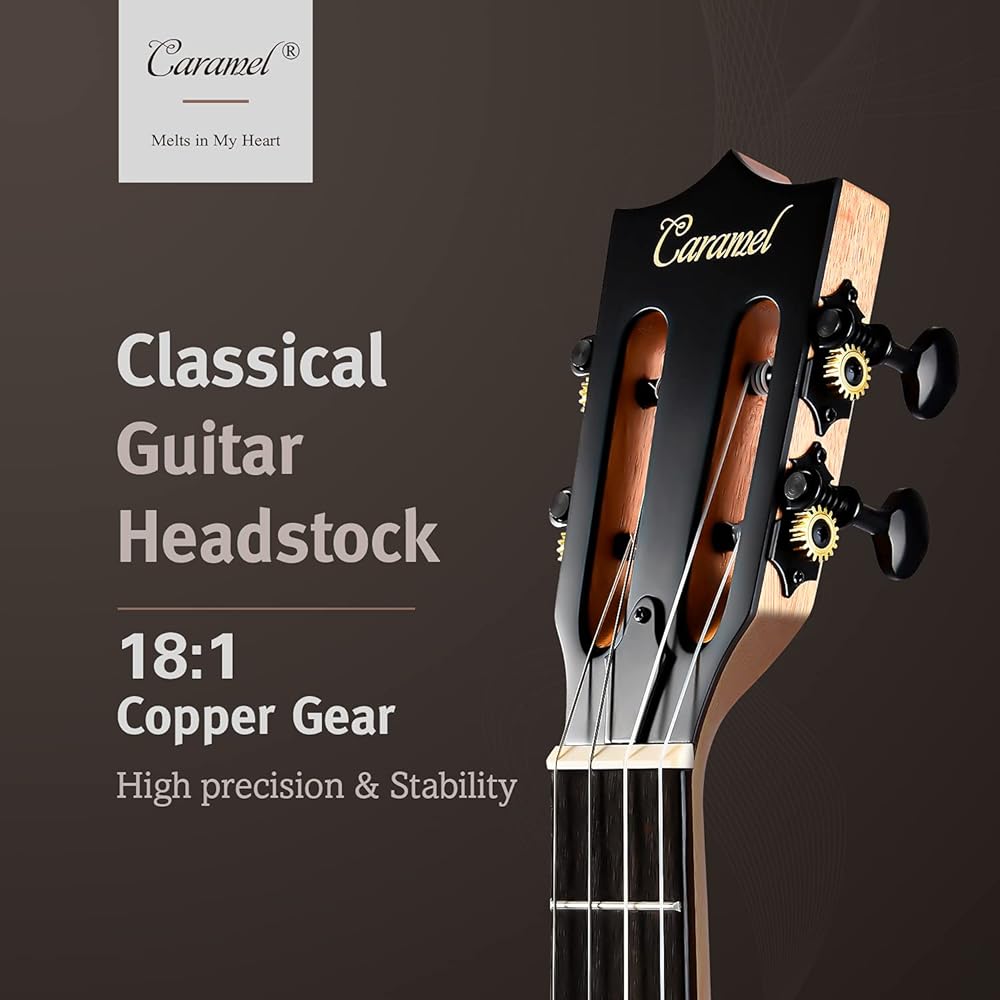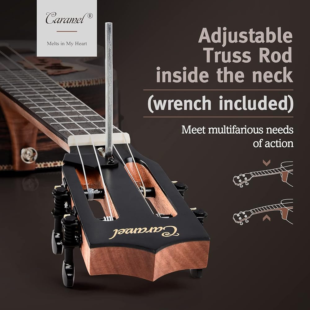 قيثارة لا مثيل لها - موالف مدمج مزود بـ 3 نطاقات EQ مع شاشة LCD ملونة، جاهز لهذا الجهاز الكهربائي الصوتي الفريد من نوعه لإعادة إنتاج الصوت الطبيعي إلى أمبير أو PA أو وسط تسجيل.! قضيب تروس قابل للتعديل داخل الرقبة (يتضمن مفتاح الربط)، حتى يتمكن اللاعبون من ضبط العمل وفقًا لاحتياجاتهم. تتميز القيثارة النادرة بمثل هذه الميزة. أوتار أكويلا لإنشاء صوت كامل. تبدو القيثارة الكراميل تقريبًا مثل القيثارة الاحترافية باهظة الثمن. قام Luthiers بضبطها واحدًا تلو الآخر قبل أن نشحن القيثارة الخاصة بك