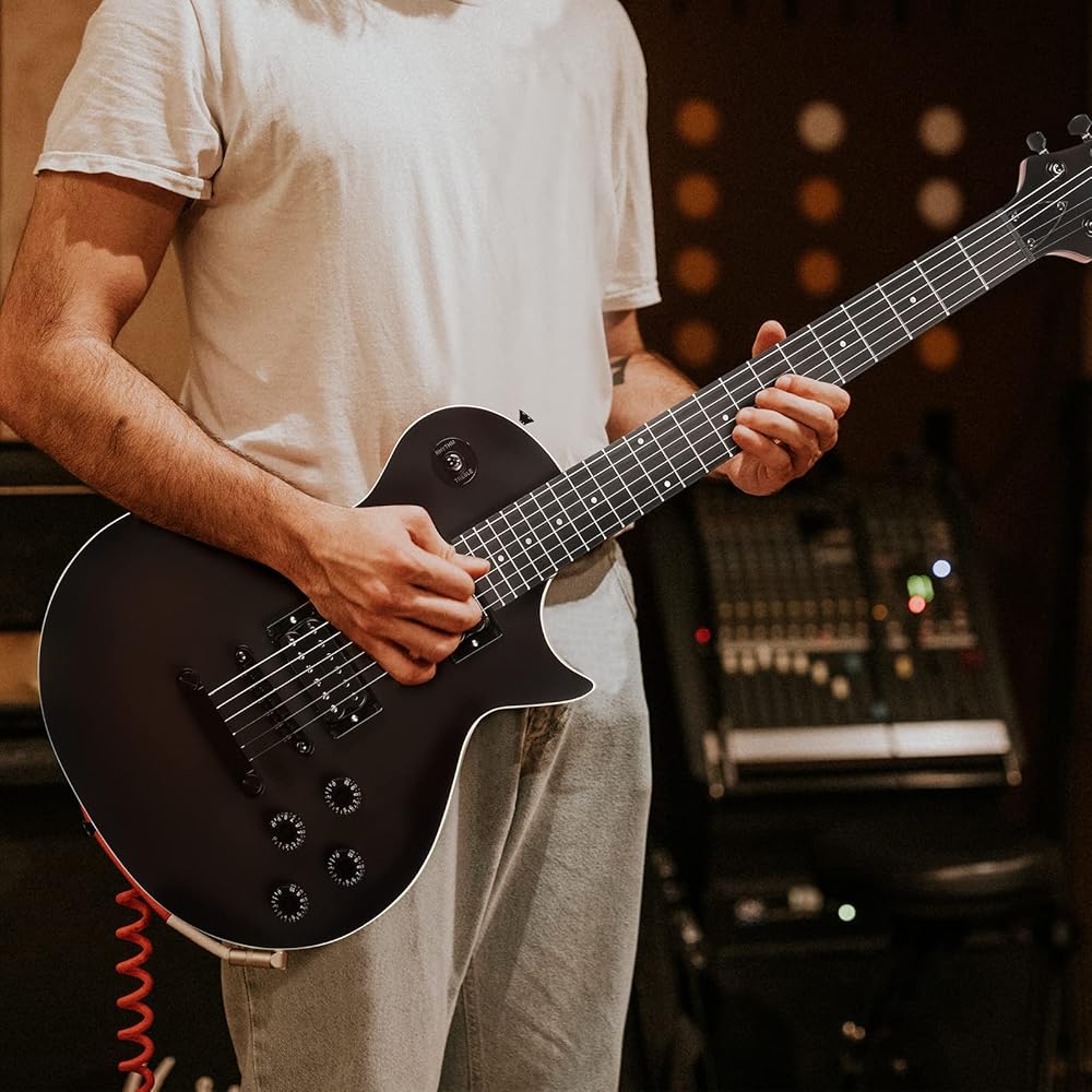 【استمتع بنغمة رائعة】يتميز هذا الجيتار الكهربائي بإخراج طاقة عالية وأداء فائق في تقليل الضوضاء، مما يوفر صوتًا واضحًا وتشويهًا ثلاثيًا ساطعًا.