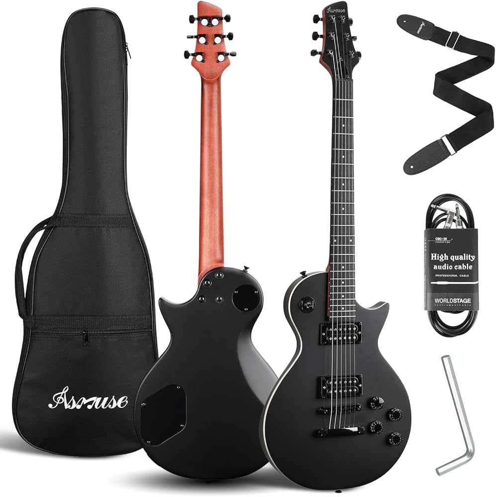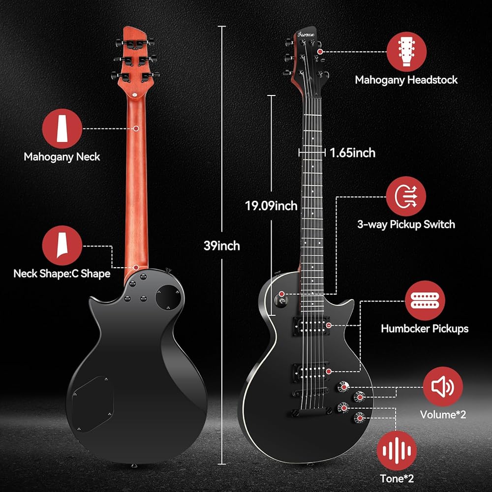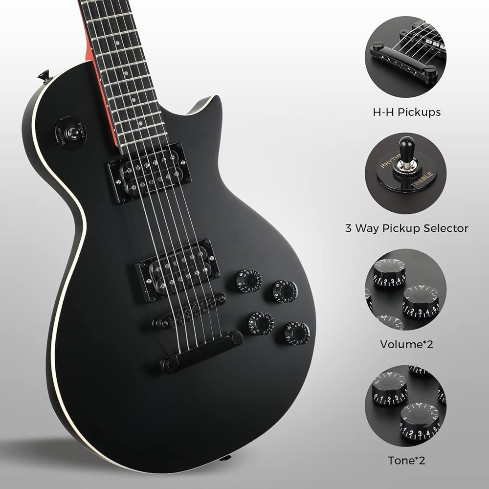【ملحقات كاملة】تأتي مع 1 × جيتار كهربائي من Les Paul، 1 × حقيبة محمولة سميكة، 1 × حزام كتف، 1 × كابل أمبير. مجموعة الجيتار الكهربائي هذه مجهزة بكل ما تحتاجه. أحضره إلى المنزل واستمتع به