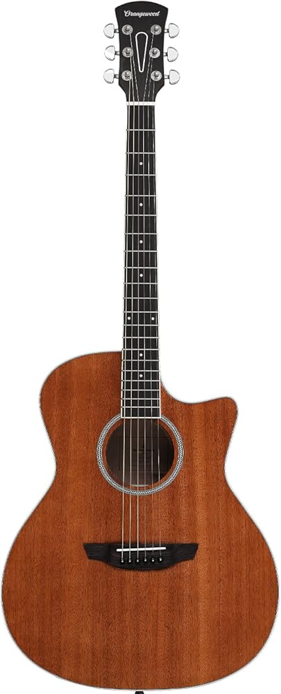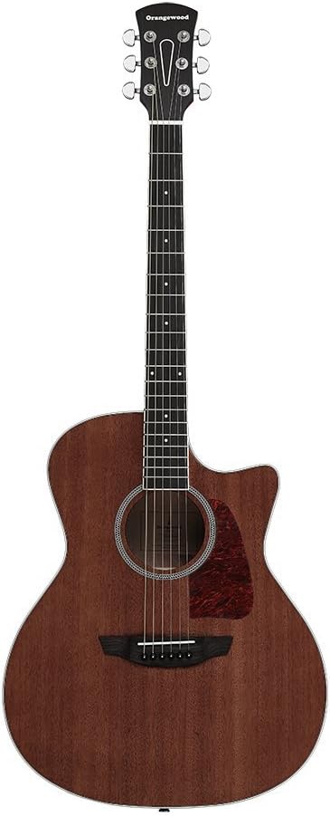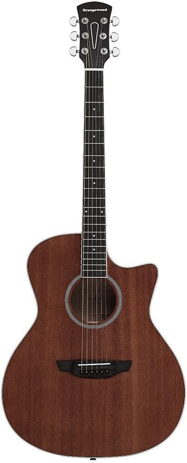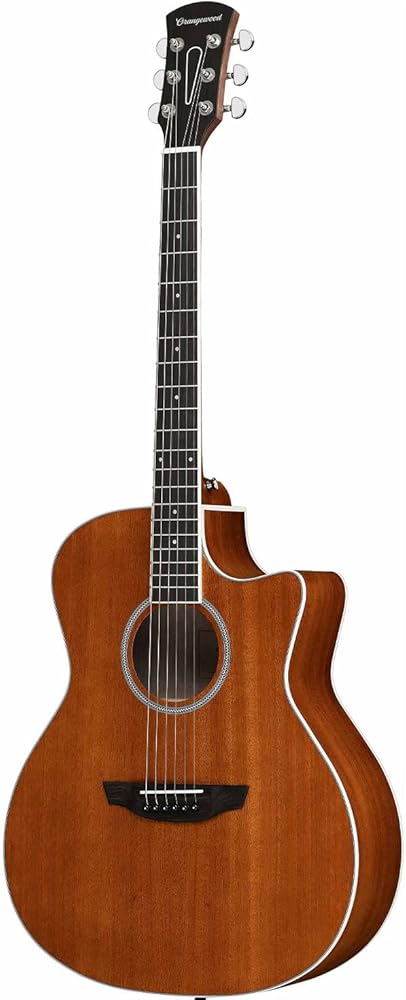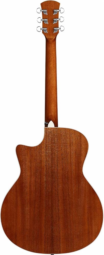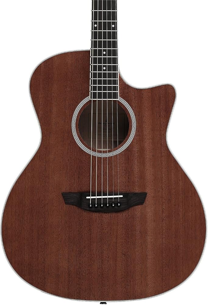 - جيتار صوتي بنمط مقطوع يتميز بطبقة علوية من خشب الماهوجني وطبقة خلفية وجوانب من خشب الماهوجني بلمسة نهائية مفتوحة