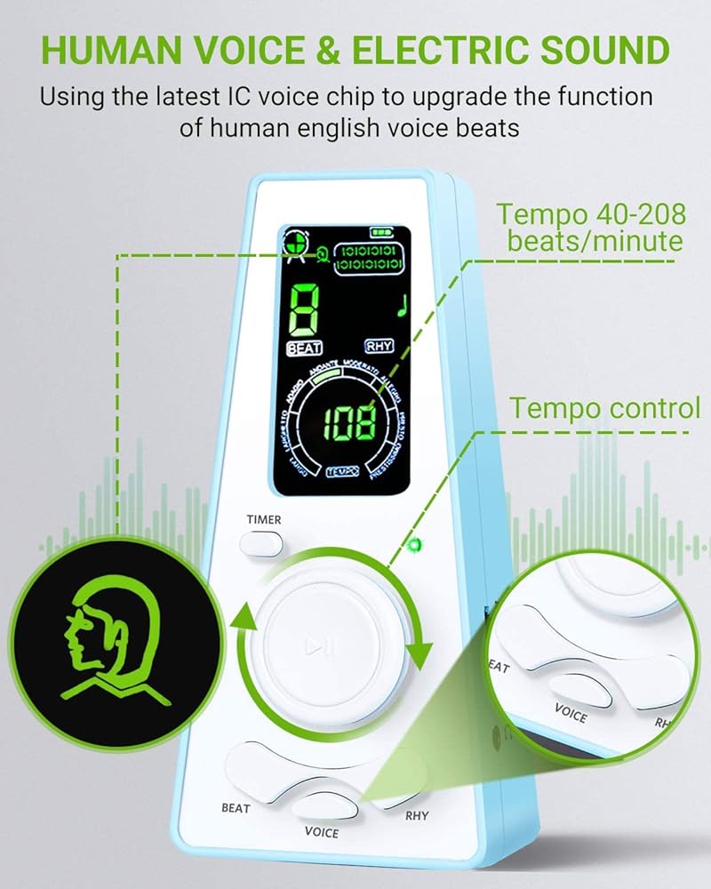 ♫ ترقية الصوت: استخدام أحدث شريحة صوت IC لترقية وظيفة دقات الصوت الإنجليزية البشرية، والتي من الأفضل التدرب عليها مع الضربات. ضربات دقيقة وسهلة الاستخدام، الصوت واضح، مستوى الصوت مرتفع وقابل للتعديل. تجلب لك تجربة أفضل.