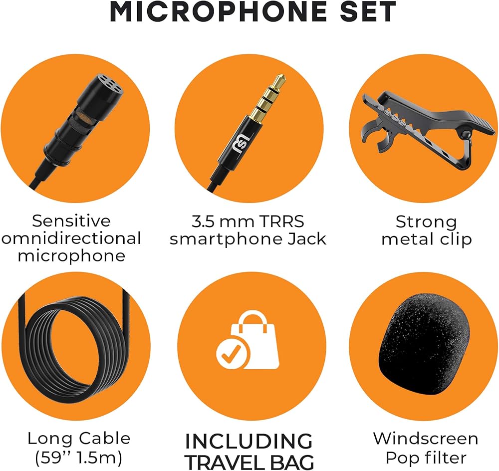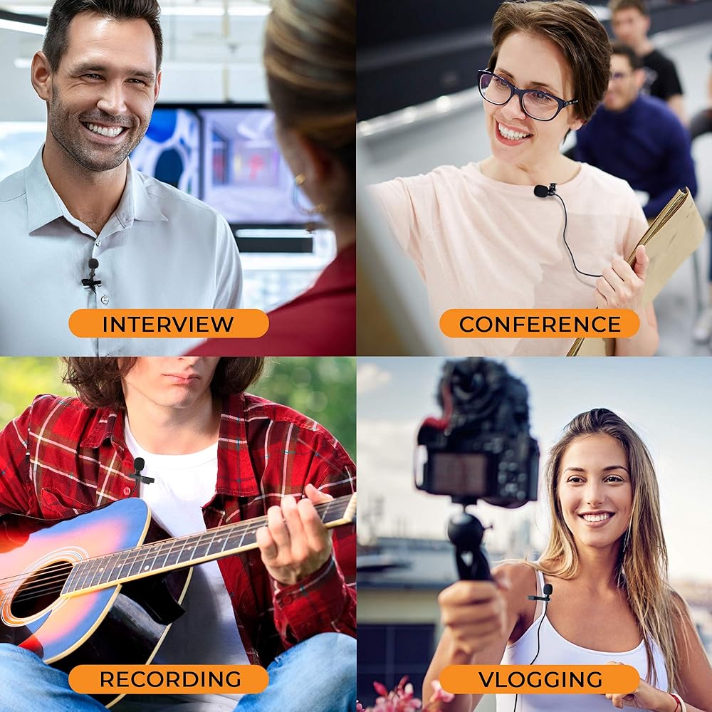 ميكروفون لافالير سلكي بمشبك على طية صدر السترة لهواتف ايفون واندرويد الذكية، ميكروفون متعدد الاتجاهات للتسجيل مع مشبك لمدوني الفيديو والمدونين
