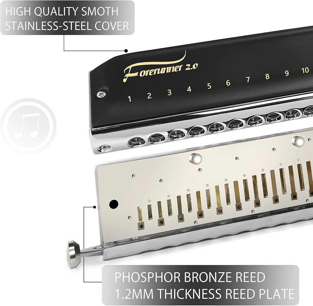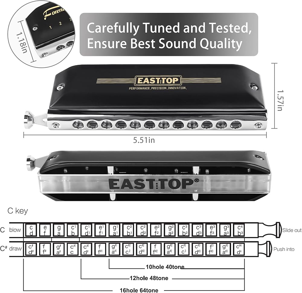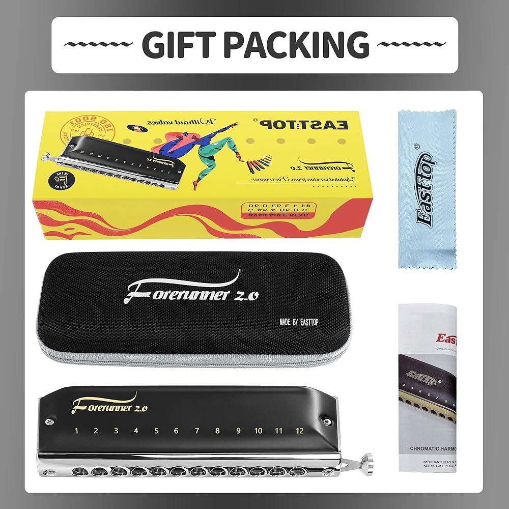 تم تحديث EAST TOP FORERUNNER 2.0 بدون صمامات هارمونيكا لونية 12 فتحة 48 نغمة C مفتاح لوني للفم هارمونيكا للبالغين والمبتدئين والطلاب